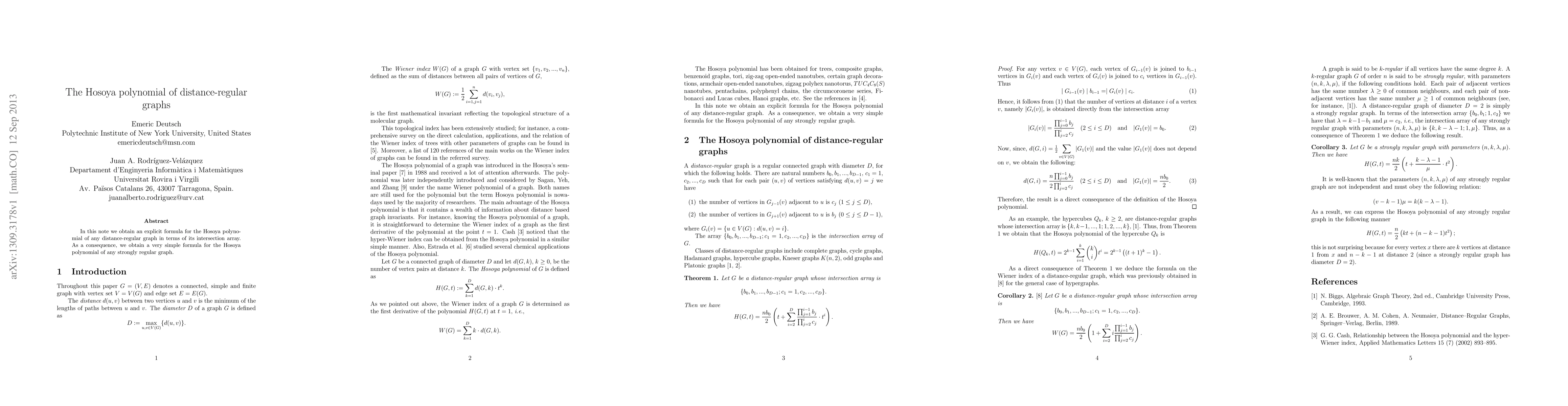This paper provides an explicit formula for the Hosoya polynomial of any distance-regular graph using its intersection array, leading to a straightforward formula for strongly regular graphs.