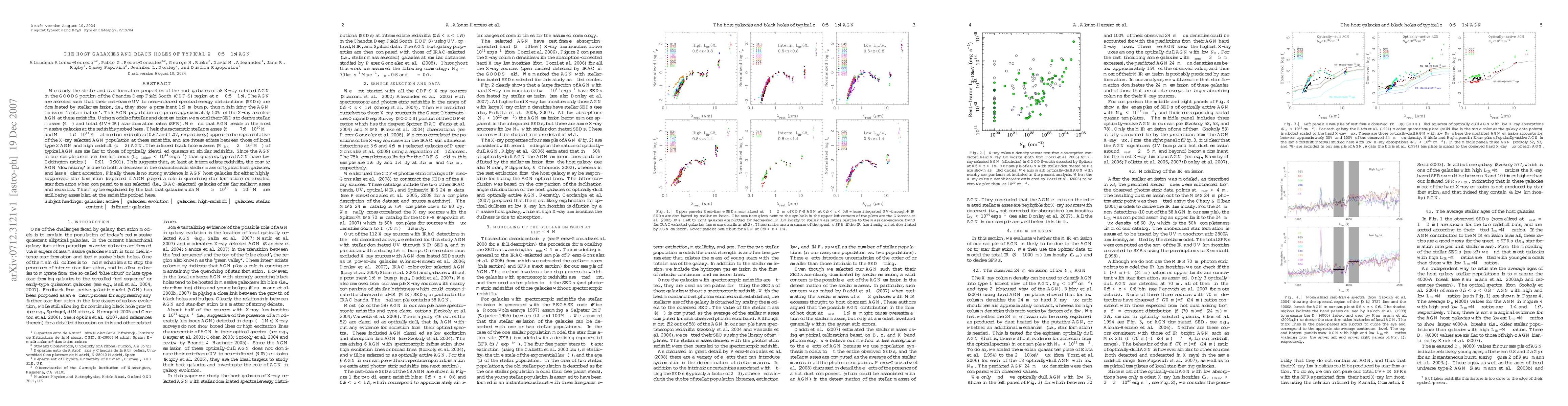 We study the stellar and star formation (SF) properties of the host galaxies of 58 X-ray selected AGN in the GOODS portion of the Chandra Deep Field South (CDF-S) region at z~0.5-1.4. The AGN are selected such that their rest-frame UV to near-IR SEDs are dominated by stellar emission, i.e., they show a prominent 1.6micron bump, thus minimizing the AGN emission 'contamination'. This AGN population comprises approximately 50% of the X-ray selected AGN at these redshifts. Using models of stellar and dust emission we model their SEDs to derive stellar masses (M*) and total (UV+IR) star formation rates (SFR). AGN reside in the most massive galaxies at the redshifts probed here. Their characteristic stellar masses (M*~7.8x10^10 Msun and M*~1.2x10^11 Msun at median z of 0.67 and 1.07, respectively) appear to be representative of the X-ray selected AGN population at these redshifts, and are intermediate between those of local type 2 AGN and high redshift (z~2) AGN. The inferred black hole masses (MBH~ 2x10^8 Msun) of typical AGN are similar to those of optically identified quasars at similar redshifts. Since the AGN in our sample are much less luminous (L(2-10keV)<10^44 erg/s) than quasars, typical AGN have low Eddington ratios (eta~0.01-0.001). This suggests that, at least at intermediate z, the cosmic AGN 'downsizing' is due to both a decrease in the characteristic stellar mass of typical host galaxies, and less efficient accretion. Finally there is no strong evidence in AGN host galaxies for either highly suppressed SF (expected if AGN played a role in quenching SF) or elevated SF when compared to mass selected (i.e., IRAC-selected) galaxies of similar stellar masses and redshifts. This may be explained by the fact that galaxies with M*~5x 10^10 - 5x10^11 Msun are still being assembled at the redshifts probed here.