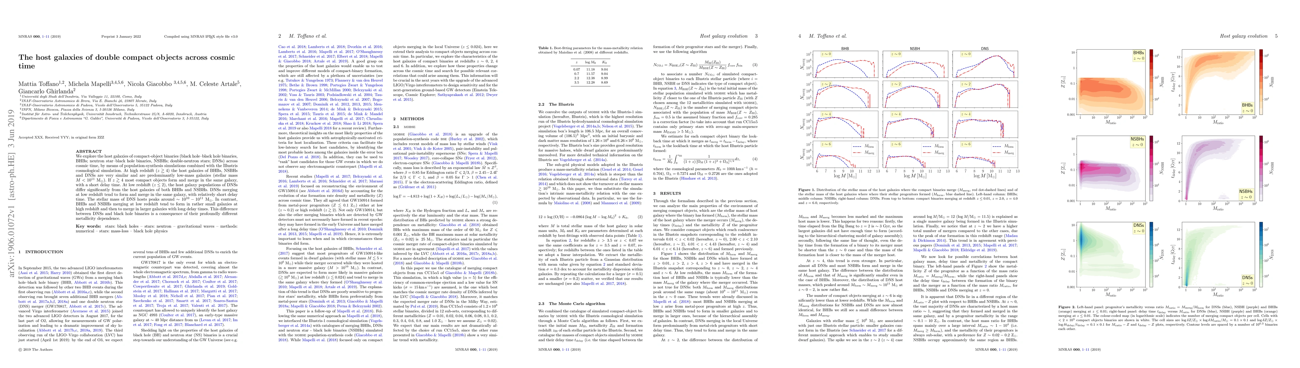 A study using simulations found that double compact objects in galaxies change their host galaxy type over cosmic time, with neutron star-double neutron star mergers forming in similar low-mass galaxies at high redshifts.