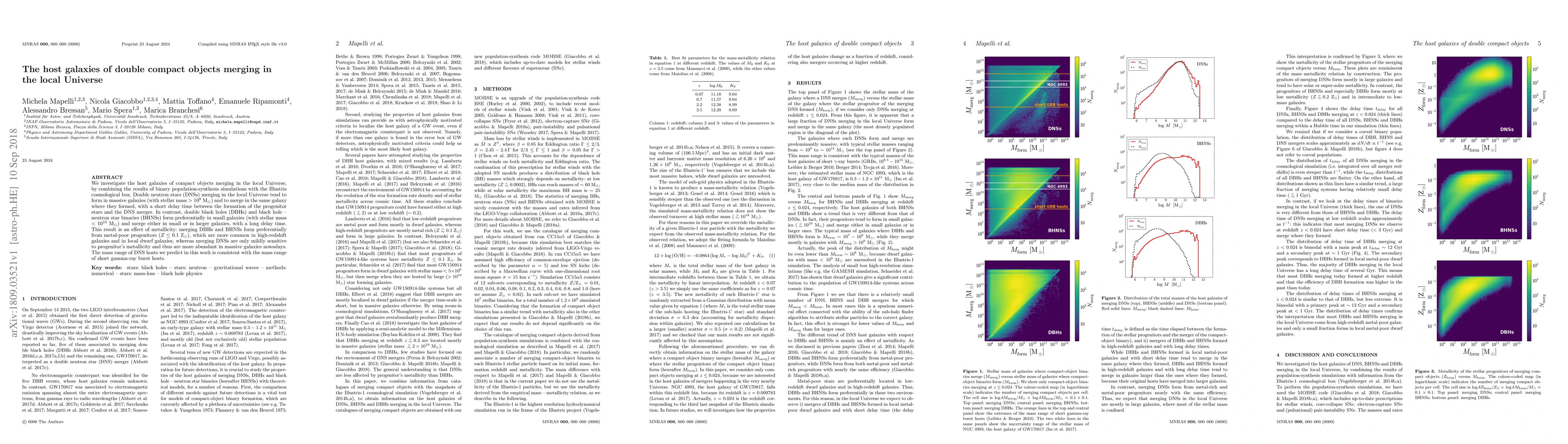 This study combines binary population-synthesis simulations with cosmological data to examine the host galaxies of merging compact objects. Double neutron star mergers predominantly occur in massive galaxies with short delay times, while double black holes and black hole-neutron star binaries form in smaller galaxies with longer delay times, influenced by metallicity differences.