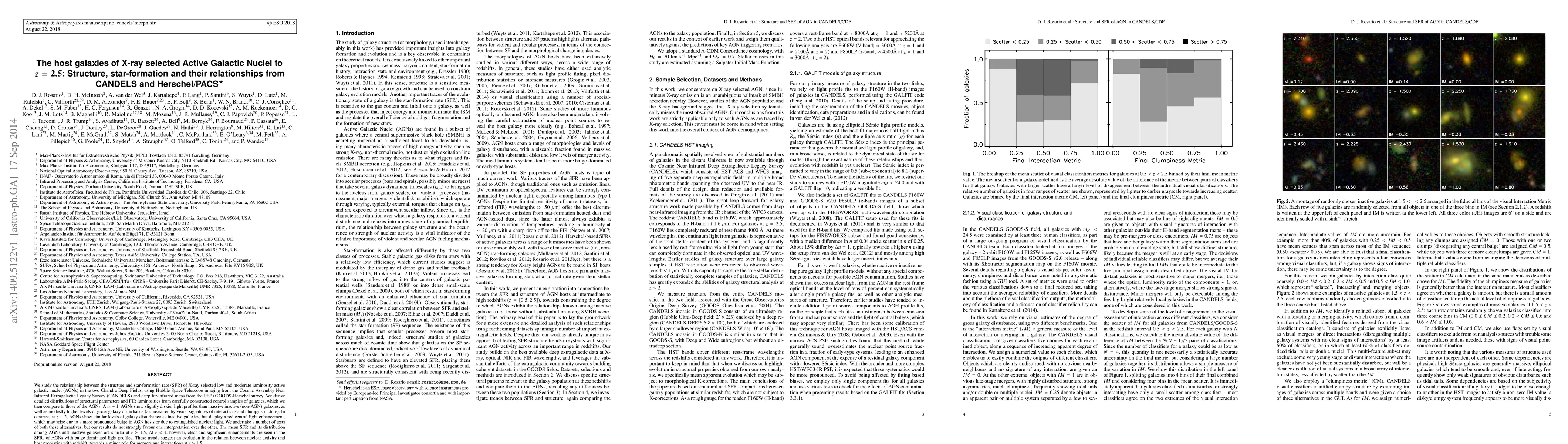 This study investigates the structural and star-formation characteristics of X-ray selected active galactic nuclei (AGNs) up to z=2.5 using CANDELS and Herschel data. AGNs at z~1 exhibit more disk-like structures and higher disturbance levels compared to inactive galaxies, while at z~2, they show a red central enhancement possibly due to a more pronounced bulge or obscured nuclear light. The star-formation rates of AGNs and inactive galaxies are similar at z>1.5, but AGNs with bulge-dominated profiles show enhanced SFRs at z<1, indicating a redshift-dependent evolution in the relationship between AGN activity and host galaxy properties.
