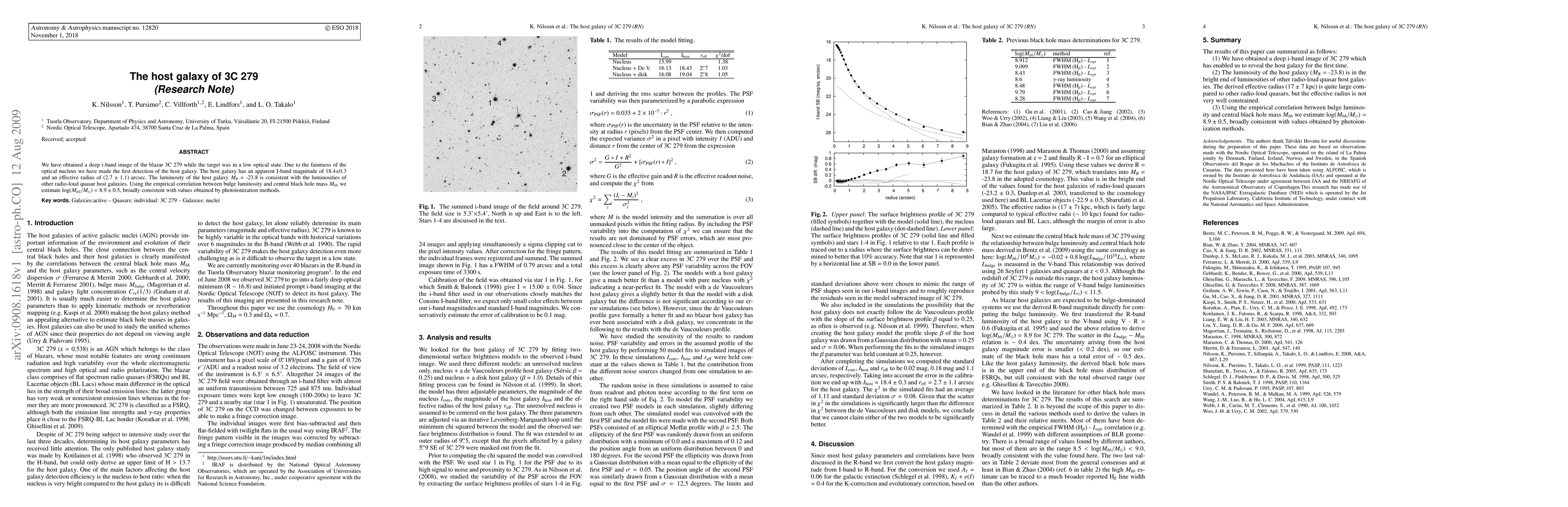 We have obtained a deep i-band image of the blazar 3C 279 while the target was in a low optical state. Due to the faintness of the optical nucleus we have made the first detection of the host galaxy. The host galaxy has an apparent I-band magnitude of 18.4 +- 0.3 and an effective radius of (2.7 +- 1.1) arcsec. The luminosity of the host galaxy M_R = -23.8 is consistent with the luminosities of other radio-loud quasar host galaxies. Using the empirical correlation between bulge luminosity and central black hole mass M_bh we estimate log(M_bh/M_Sun) = 8.9 +- 0.5, broadly consistent with values obtained by photoionization methods.
