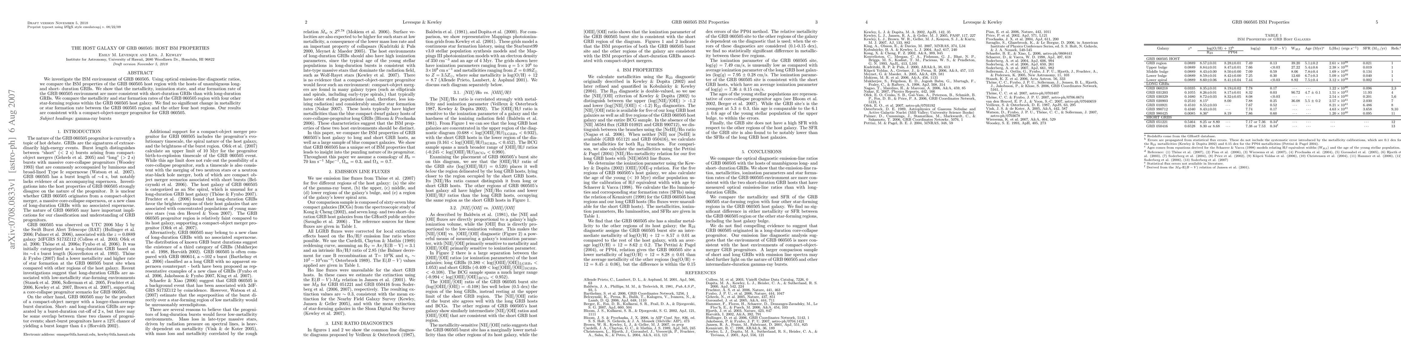 This paper examines the interstellar medium (ISM) properties of the GRB 060505 host galaxy, finding that its metallicity, ionization state, and star formation rate align more closely with short-duration GRBs than long-duration GRBs. No significant differences in these properties are observed between the GRB 060505 region and other star-forming regions within the host galaxy.