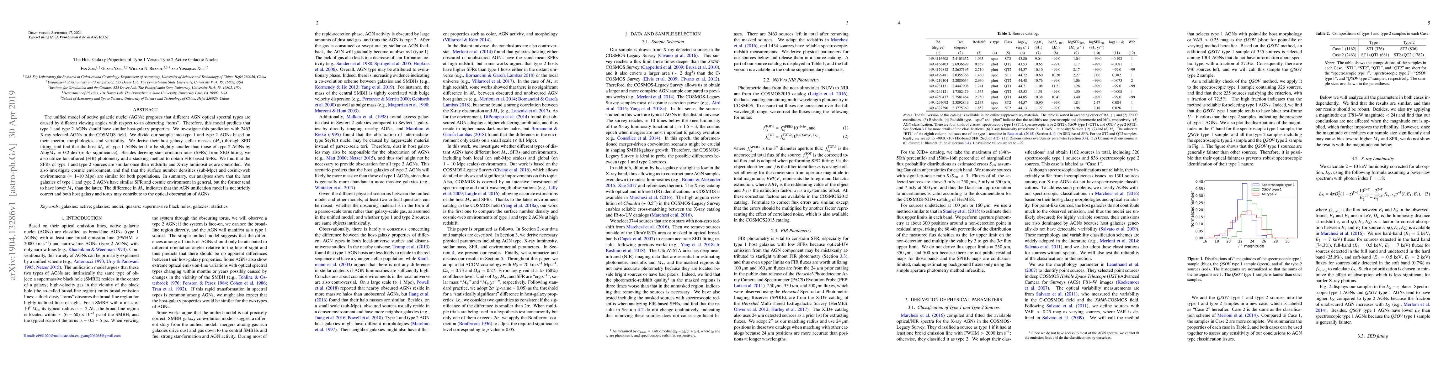 This study investigates the host-galaxy properties of type 1 and type 2 active galactic nuclei (AGNs) using 2463 X-ray selected AGNs, finding that while star-formation rates and cosmic environments are similar, type 1 AGNs host galaxies tend to have lower stellar masses than type 2 AGNs, suggesting limitations in the AGN unification model.