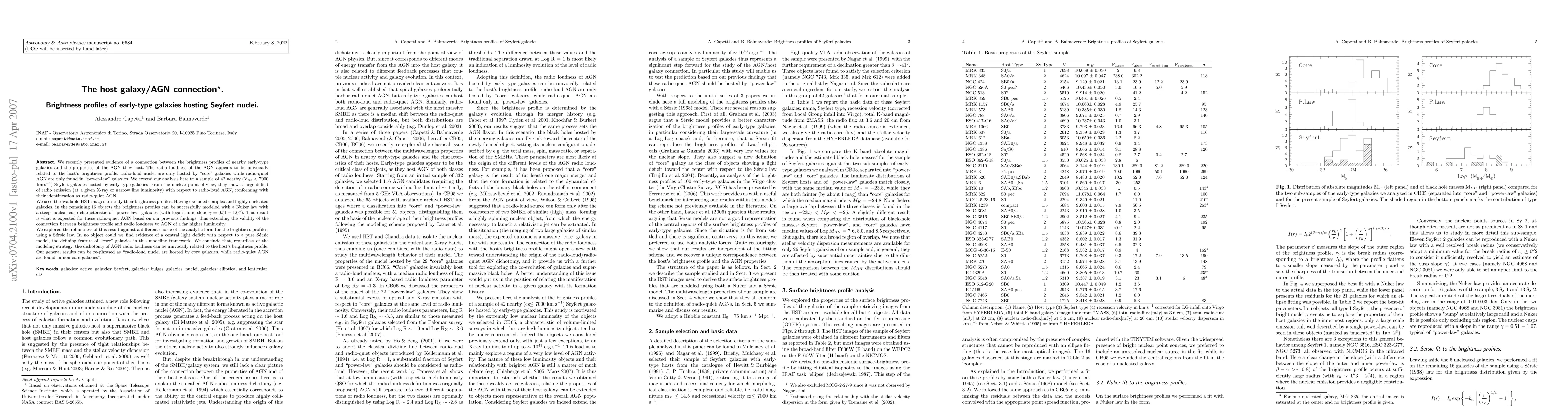 Researchers found a connection between the brightness profiles of early-type galaxies hosting Seyfert nuclei and their radio loudness, concluding that radio-loud nuclei are hosted by