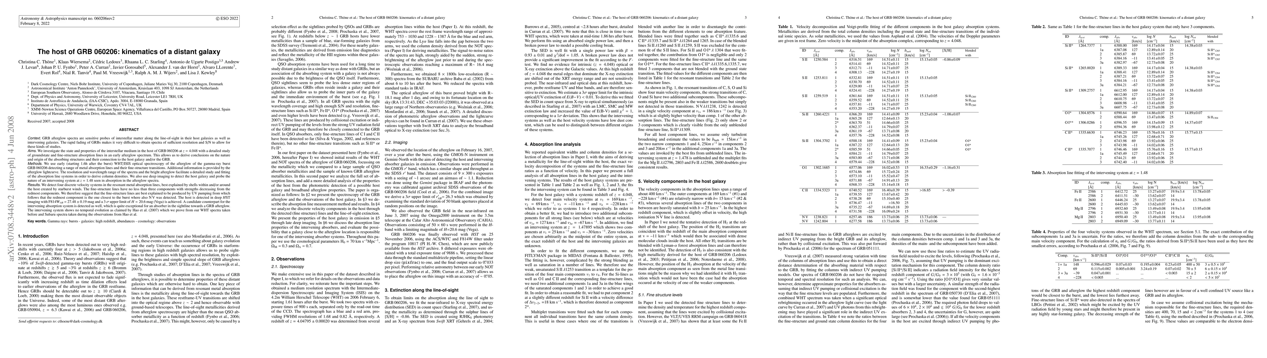 We present early (starting 1.6h after the burst) WHT/ISIS optical spectroscopy of the afterglow of the gamma-ray burst GRB 060206 detecting a range of metal absorption lines and their fine-structure transitions. Additional information is provided by the afterglow lightcurve. The resolution and wavelength range of the spectra and the bright afterglow facilitate a detailed study and fitting of the absorption line systems in order to derive column densities. We also use deep imaging to detect the host galaxy and probe the nature of an intervening system at z = 1.48 seen in absorption in the afterglow spectra. We detect four discrete velocity systems in the resonant metal absorption lines, best explained by shells within and/or around the host created by starburst winds. The fine-structure lines have no less than three components with strengths decreasing from the redmost components. We therefore suggest that the fine-structure lines are best explained to be produced by UV pumping from which follows that the redmost component is the one closest to the burst where also NV was detected. The host is detected in deep HST imaging with F814W_AB = 27.48 +- 0.19 mag and a 3 sigma upper limit of H = 20.6 mag (Vega) is achieved. A candidate counterpart for the intervening absorption system is detected as well, which is quite exceptional for an absorber in the sightline towards a GRB afterglow. The intervening system shows no temporal evolution as claimed by Hao et al. (2007) which we prove from our WHT spectra taken before and Subaru spectra taken during the observations from Hao et al.