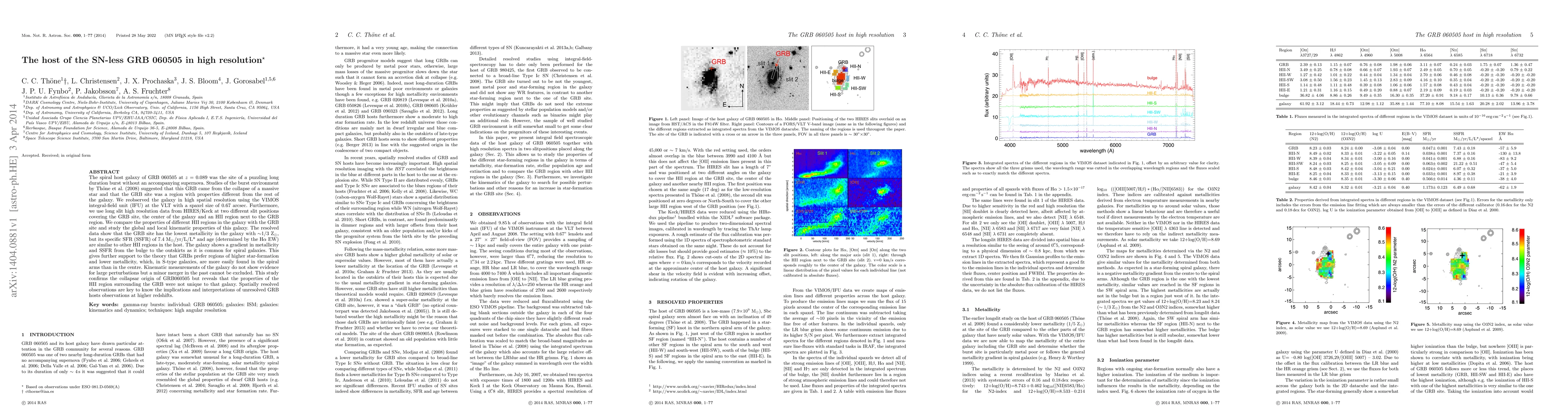 This study uses high-resolution data to analyze the host galaxy of GRB 060505, revealing it has the lowest metallicity in the galaxy but a star formation rate similar to other HII regions. The findings support the theory that GRBs occur in regions with higher star-formation and lower metallicity, typically found in spiral arms.