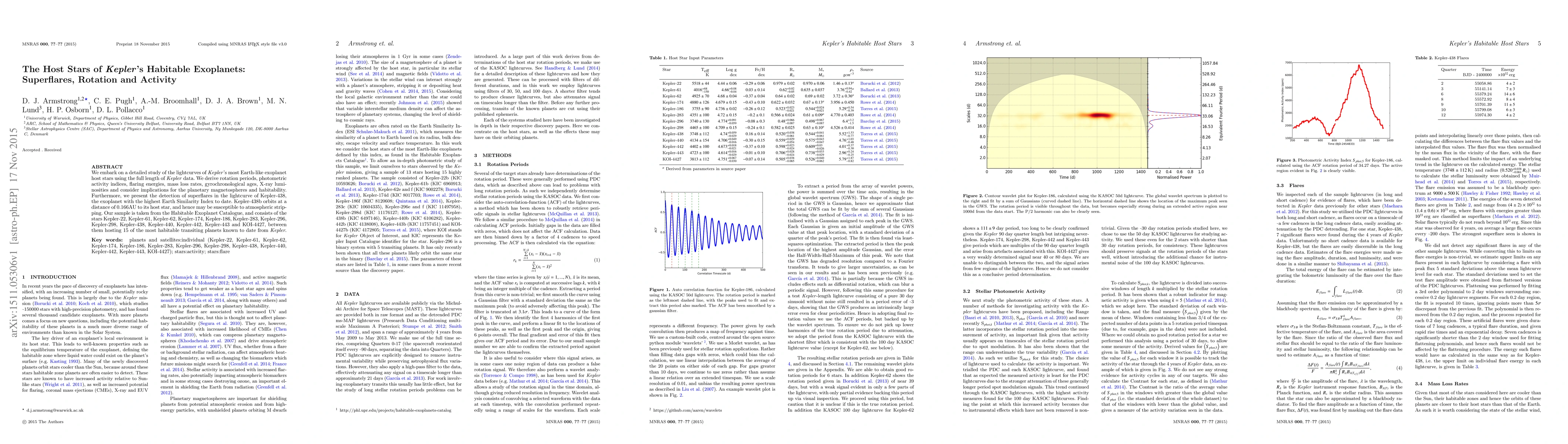 We embark on a detailed study of the lightcurves of Keplers most Earth-like exoplanet host stars using the full length of Kepler data. We derive rotation periods, photometric activity indices, flaring energies, mass loss rates, gyrochronological ages, X-ray luminosities and consider implications for the planetary magnetospheres and habitability. Furthermore, we present the detection of superflares in the lightcurve of Kepler-438, the exoplanet with the highest Earth Similarity Index to date. Kepler-438b orbits at a distance of 0.166AU to its host star, and hence may be susceptible to atmospheric stripping. Our sample is taken from the Habitable Exoplanet Catalogue, and consists of the stars Kepler-22, Kepler-61, Kepler-62, Kepler-174, Kepler-186, Kepler-283, Kepler-296, Kepler-298, Kepler-438, Kepler-440, Kepler-442, Kepler-443 and KOI-4427, between them hosting 15 of the most habitable transiting planets known to date from Kepler.