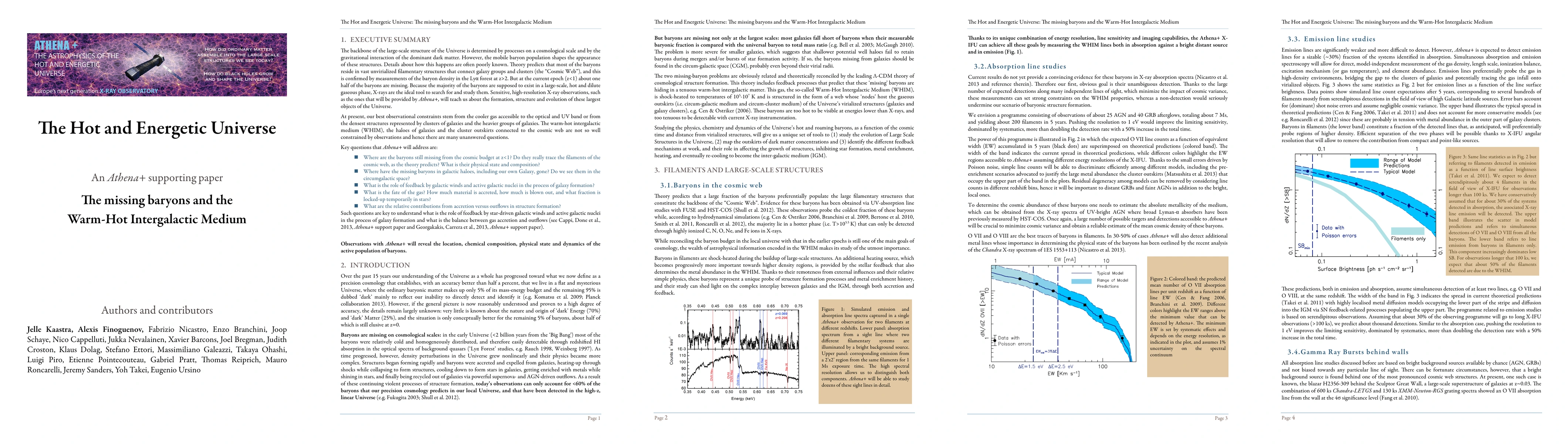 This paper explores the distribution of missing baryons in the Universe, focusing on the warm-hot intergalactic medium (WHIM) that connects galaxy groups and clusters. Upcoming X-ray observations with Athena+ will provide crucial insights into the location, composition, and dynamics of these elusive baryons.