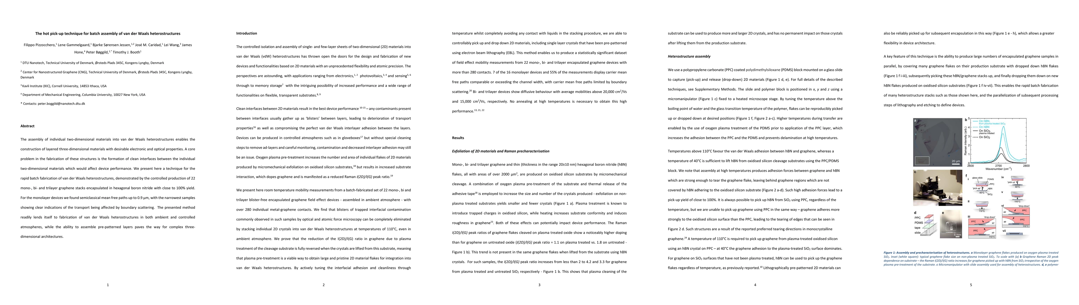 The research presents a hot pick-up technique for batch assembly of van der Waals heterostructures, demonstrated by controlled production of 22 mono-, bi-, and trilayer graphene stacks encapsulated in hexagonal boron nitride with nearly 100% yield.