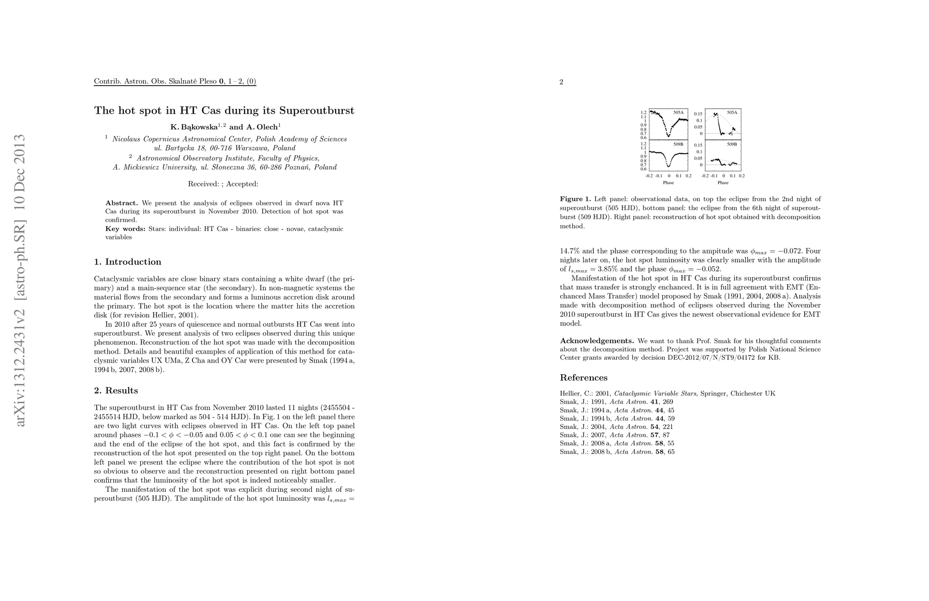 Researchers detected a hot spot in the dwarf nova HT Cas during its 2010 superoutburst, confirming previous observations.