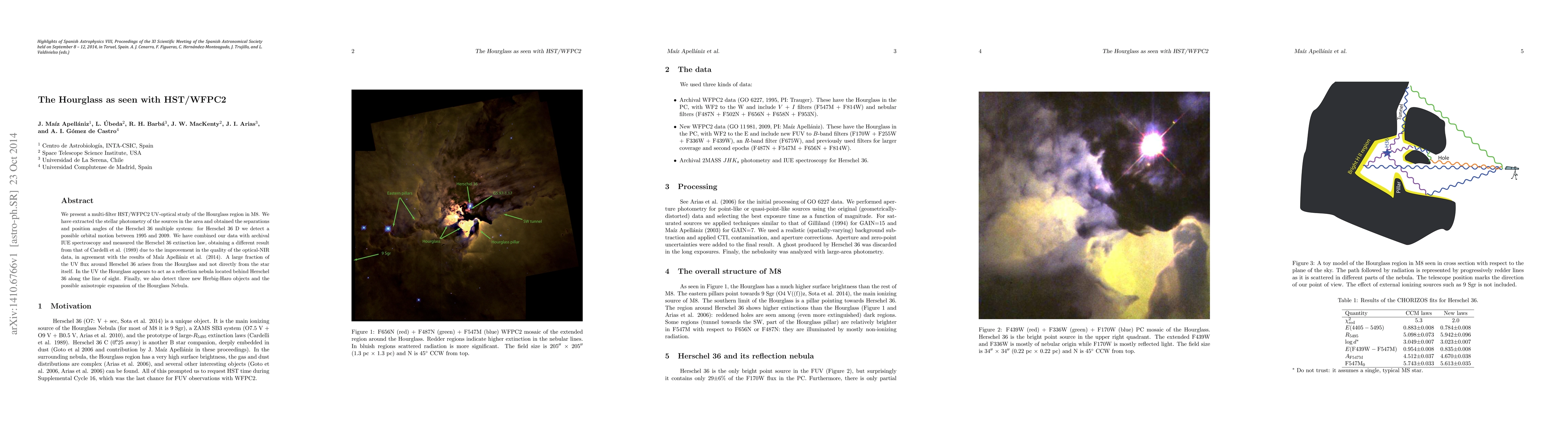 The research employs a multi-filter HST/WFPC2 UV-optical study of the Hourglass region in M8, combining data with archival IUE spectroscopy to analyze the Herschel 36 multiple system and its surrounding nebula.