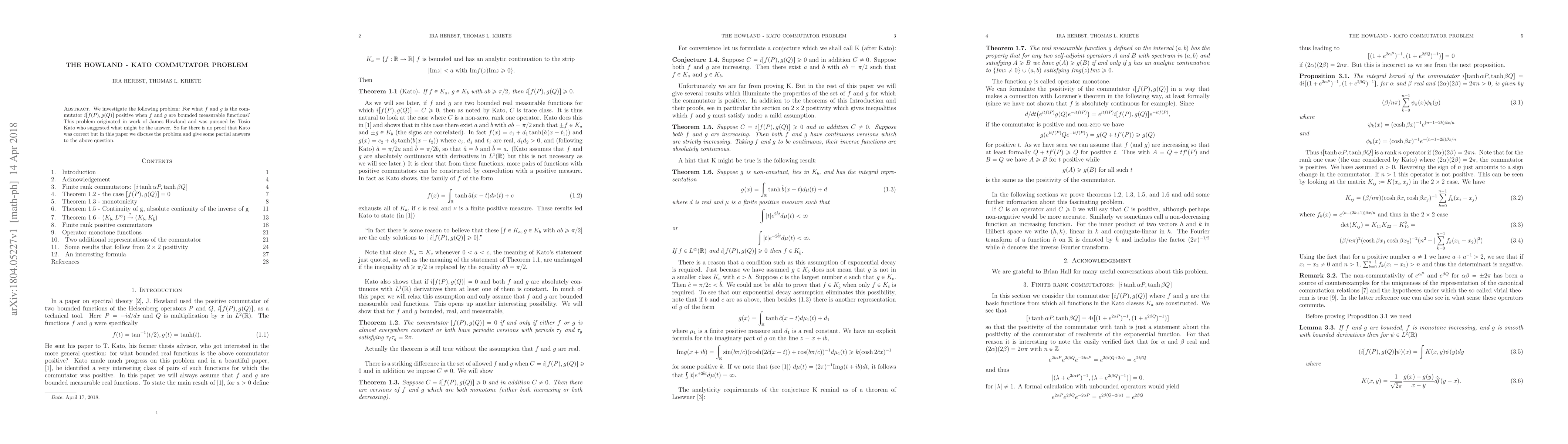 We investigate the following problem: For what $f$ and $g$ is the commutator $i[f(P),g(Q)]$ positive when $f$ and $g$ are bounded measurable functions? This problem originated in work of James Howland and was pursued by Tosio Kato who suggested what might be the answer. So far there is no proof that Kato was correct but in this paper we discuss the problem and give some partial answers to the above question.