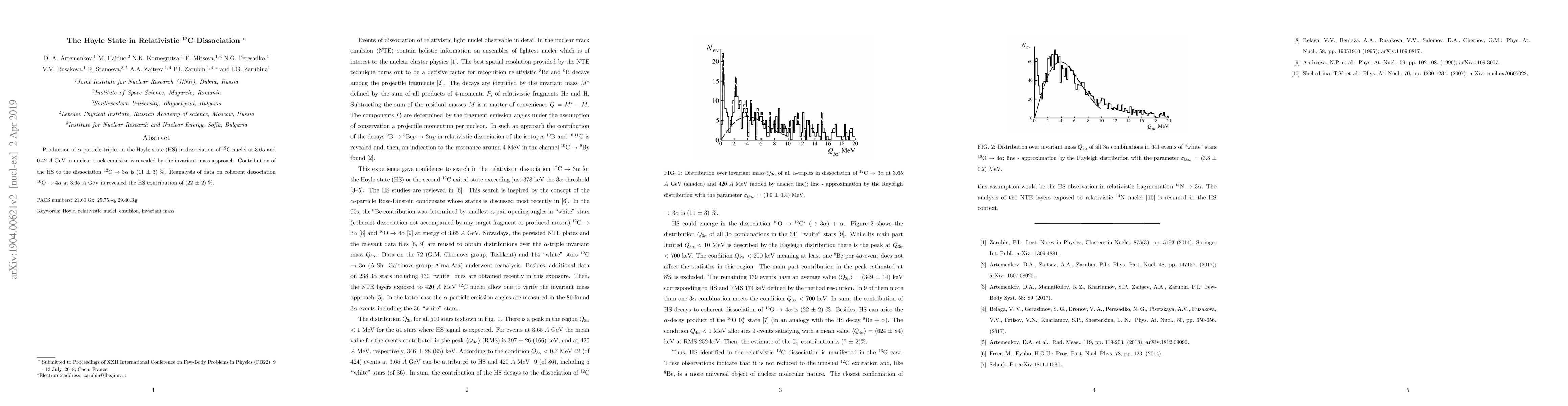 Researchers found evidence of the Hoyle state in the dissociation of 12C nuclei at two different energy levels, revealing a significant contribution to alpha particle triples production, with an average of 16.8%.