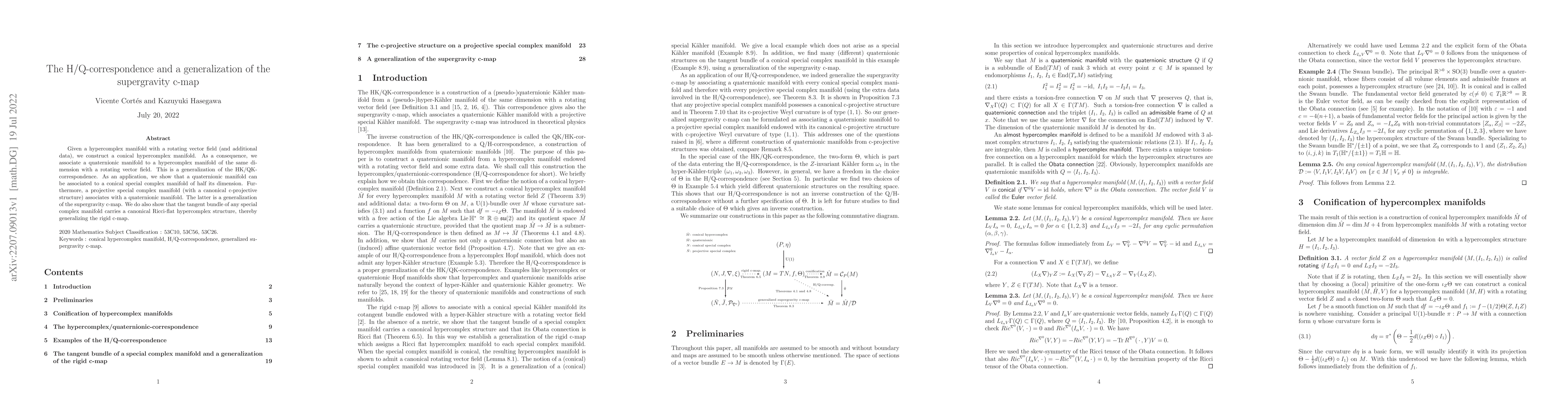 This paper generalizes the HK/QK-correspondence and supergravity c-map by constructing a conical hypercomplex manifold from a hypercomplex manifold with a rotating vector field. It also associates quaternionic manifolds with projective special complex manifolds and demonstrates the existence of a canonical Ricci-flat hypercomplex structure on the tangent bundle of special complex manifolds.