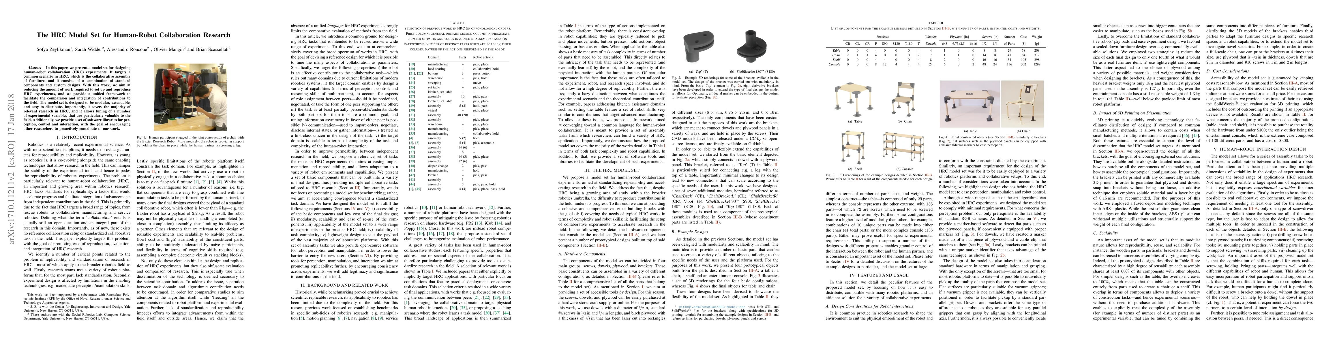 This paper introduces a modular, extendable model set for human-robot collaboration (HRC) experiments, specifically targeting furniture assembly. It aims to simplify experiment setup and facilitate research comparison, while providing software libraries to encourage community contributions.