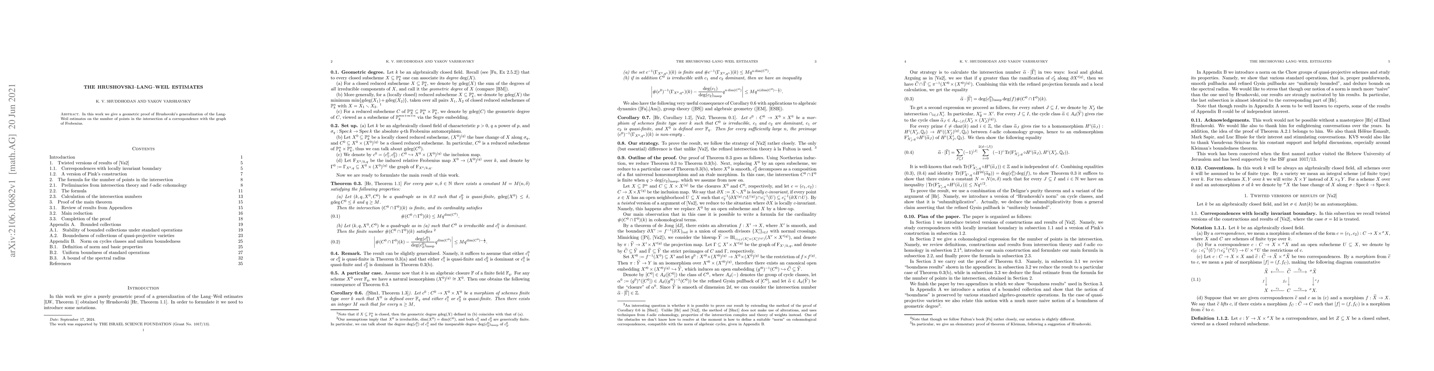 Researchers provide a geometric proof of Hrushovski's generalization of the Lang-Weil estimates on the number of points in intersection of a correspondence with Frobenius graph, offering new insights into counting problems.