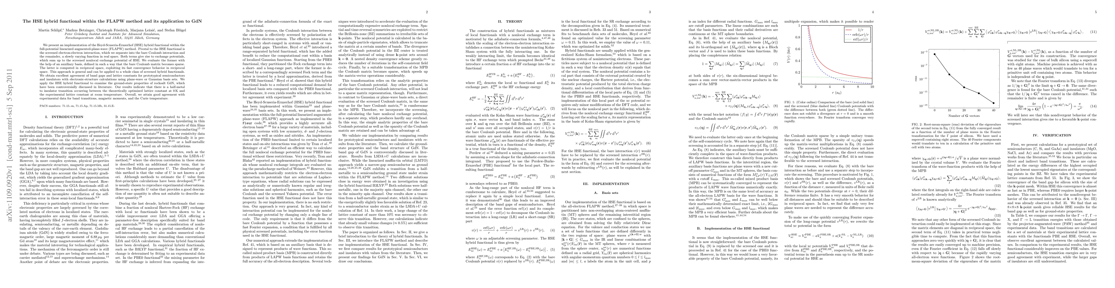 This paper implements the HSE hybrid functional within the FLAPW method, achieving accurate band gaps and lattice constants for semiconductors. It applies this method to GdN, revealing a half-metal to insulator transition and good agreement with experimental data on its properties.