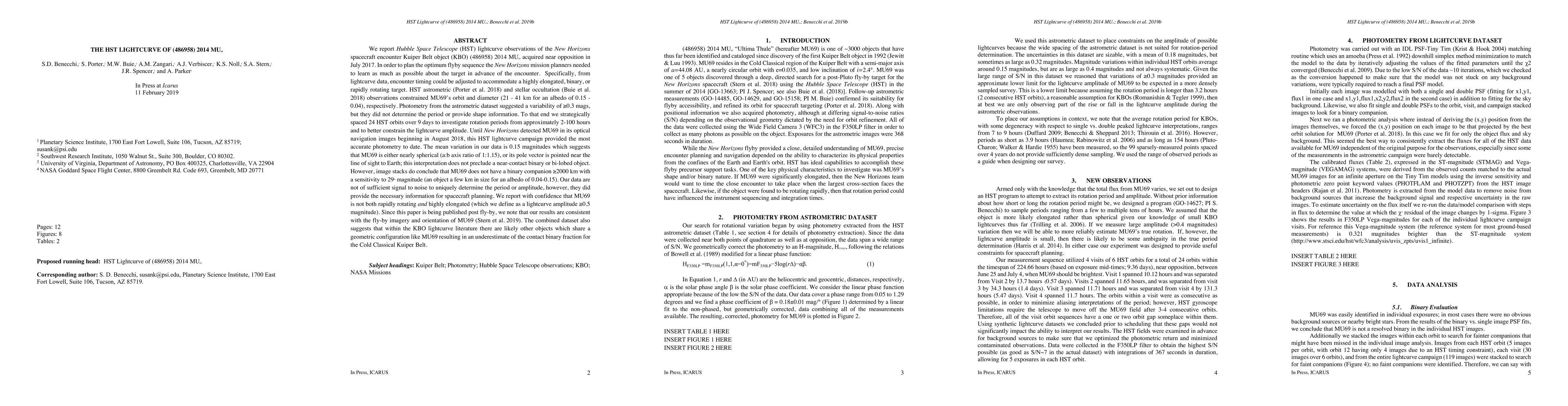 This paper reports on Hubble Space Telescope (HST) lightcurve observations of the Kuiper Belt Object (486958) 2014 MU69, providing insights into its rotation period and shape. The data suggest a mean variation of 0.15 mags, indicating MU69 is likely nearly spherical or has its pole aligned with Earth, ruling out rapid rotation and high elongation.