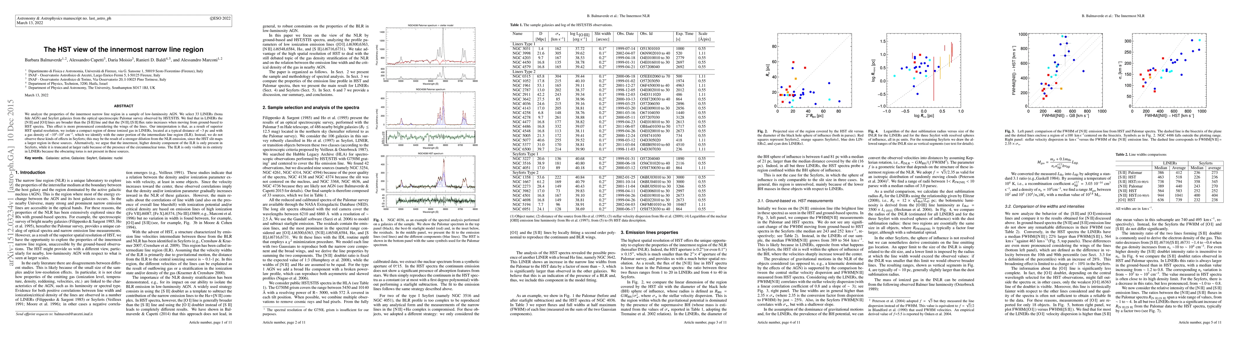 We analyze the properties of the innermost narrow line region in a sample of low-luminosity AGN. We select 33 LINERs (bona fide AGN) and Seyfert galaxies from the optical spectroscopic Palomar survey observed by HST/STIS. We find that in LINERs the [NII] and [OI] lines are broader than the [SII] line and that the [NII]/[SII] flux ratio increases when moving from ground-based to HST spectra. This effect is more pronounced considering the wings of the lines. Our interpretation is that, as a result of superior HST spatial resolution, we isolate a compact region of dense ionized gas in LINERs, located at a typical distance of about 3 pc and with a gas density of about 10$^4$-10$^5$ cm$^{-3}$, which we identify with the outer portion of the intermediate line region (ILR). Instead, we do not observe these kinds of effects in Seyferts; this may be the result of a stronger dilution from the NLR emission, since the HST slit maps a larger region in these sources. Alternatively, we argue that the innermost, higher density component of the ILR is only present in Seyferts, while it is truncated at larger radii because of the presence of the circumnuclear torus. The ILR is only visible in its entirety in LINERs because the obscuring torus is not present in these sources.