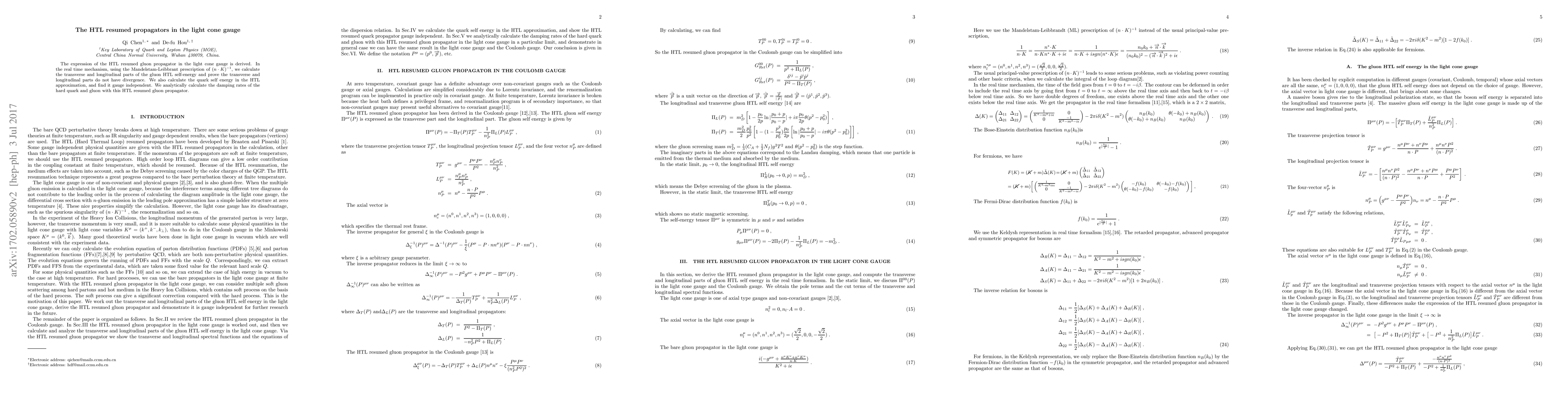 This paper derives the HTL resumed gluon propagator in the light cone gauge, showing that the transverse and longitudinal parts of the gluon self-energy do not diverge. It also finds the quark self-energy in the HTL approximation to be gauge independent and calculates the damping rates of hard quarks and gluons using the derived propagator.