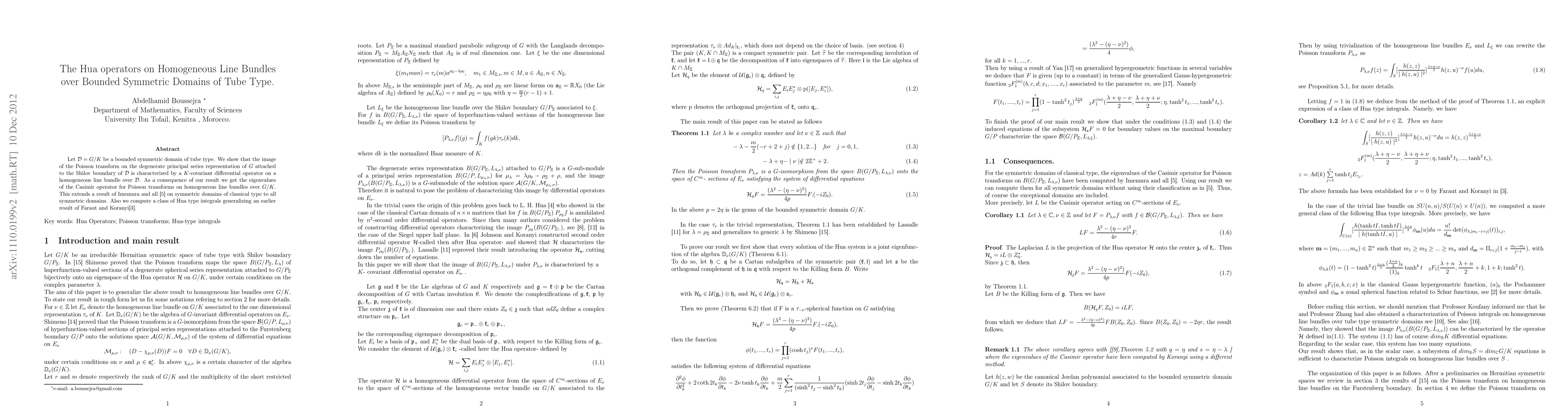 The paper shows that the Poisson transform on a bounded symmetric domain of tube type creates a covariant differential operator on a homogeneous line bundle, providing insight into its representation in the degenerate principal series.