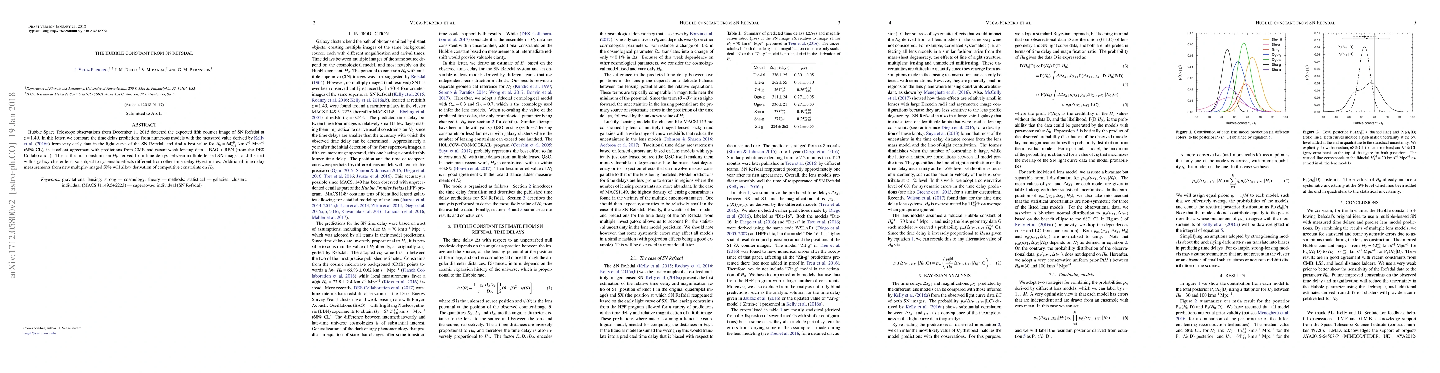 The Hubble constant has been constrained to $64^{+9}_{-11}~ ext{km~s^{-1}~Mpc^{-1}}$ based on observations of SN Refsdal, agreeing with CMB and weak lensing data.