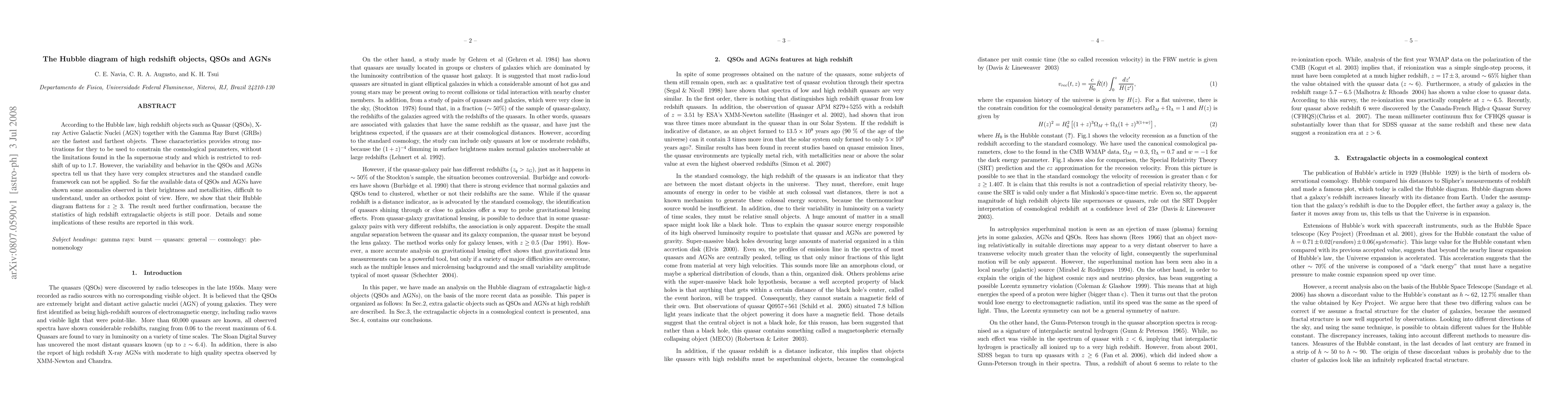 According to the Hubble law, high redshift objects such as Quasar (QSOs), X-ray Active Galactic Nuclei (AGN) together with the Gamma Ray Burst (GRBs) are the fastest and farthest objects. These characteristics provides strong motivations for they to be used to constrain the cosmological parameters, without the limitations found in the Ia supernovae study and which is restricted to redshift of up to 1.7. However, the variability and behavior in the QSOs and AGNs spectra tell us that they have very complex structures and the standard candle framework can not be applied. So far the available data of QSOs and AGNs have shown some anomalies observed in their brightness and metallicities, difficult to understand, under an orthodox point of view. Here, we show that their Hubble diagram flattens for $z\geq 3 $. The result need further confirmation, because the statistics of high redshift extragalactic objects is still poor. Details and some implications of these results are reported in this work.
