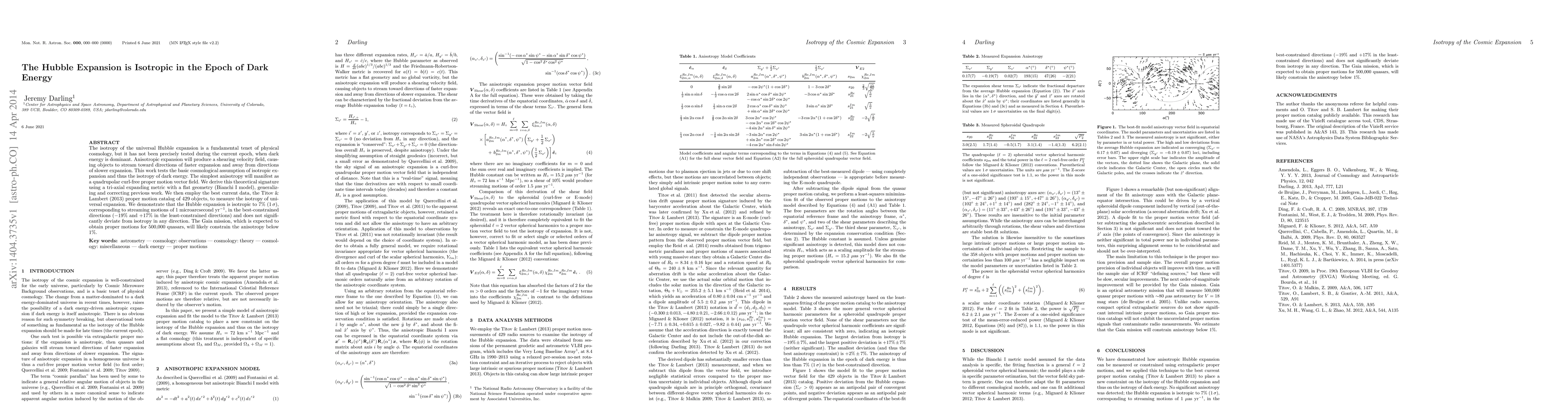 This research confirms that the Hubble expansion is isotropic to 7% during the epoch dominated by dark energy, using the Titov & Lambert (2013) catalog of proper motions. Future data from the Gaia mission is expected to reduce this anisotropy constraint to below 1%.