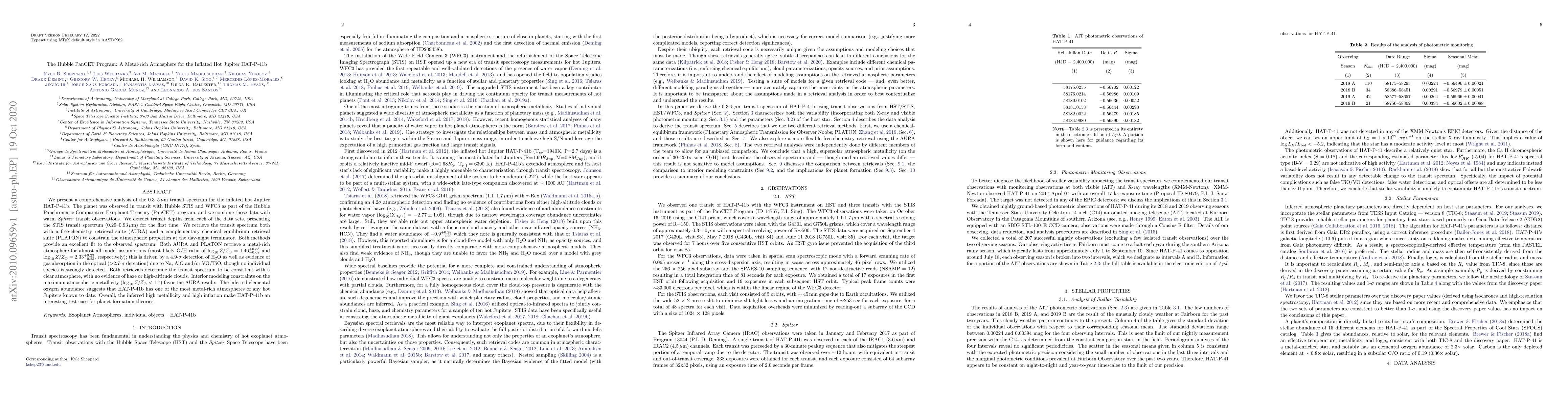 The Hubble PanCET Program reveals a metal-rich atmosphere for the inflated hot Jupiter HAT-P-41b, with a high O/H ratio and clear atmosphere, based on combined Hubble and Spitzer observations. The planet's high metallicity suggests it is a significant case for studying planet formation theories.