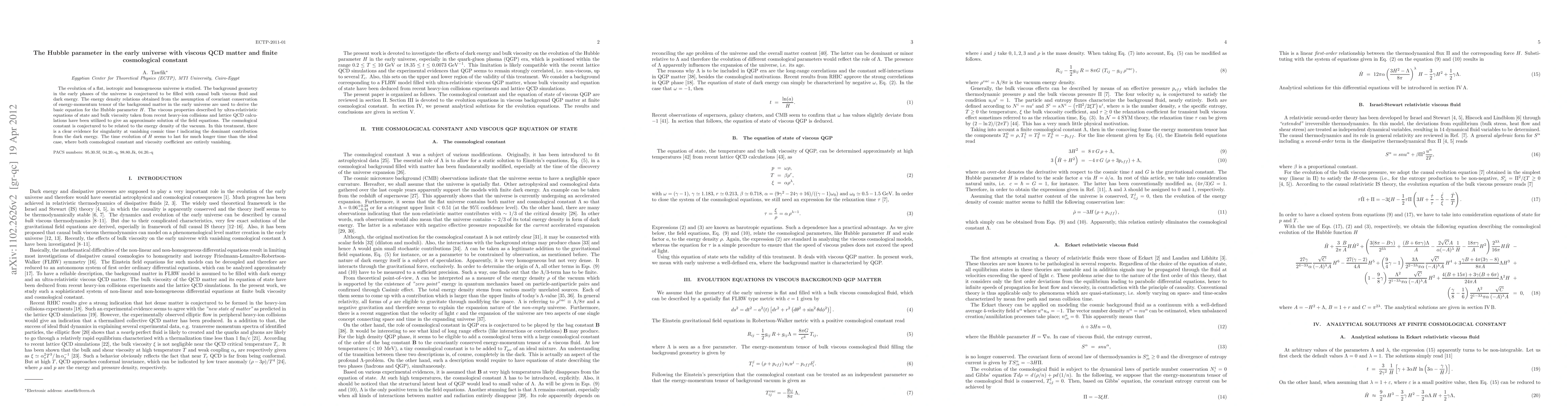This paper investigates the evolution of a flat universe filled with viscous QCD matter and dark energy, deriving the Hubble parameter $H$ using covariant conservation of energy-momentum. The study finds a longer time evolution of $H$ compared to the ideal case, with a singularity at $t=0$ indicating the dominant role of dark energy.