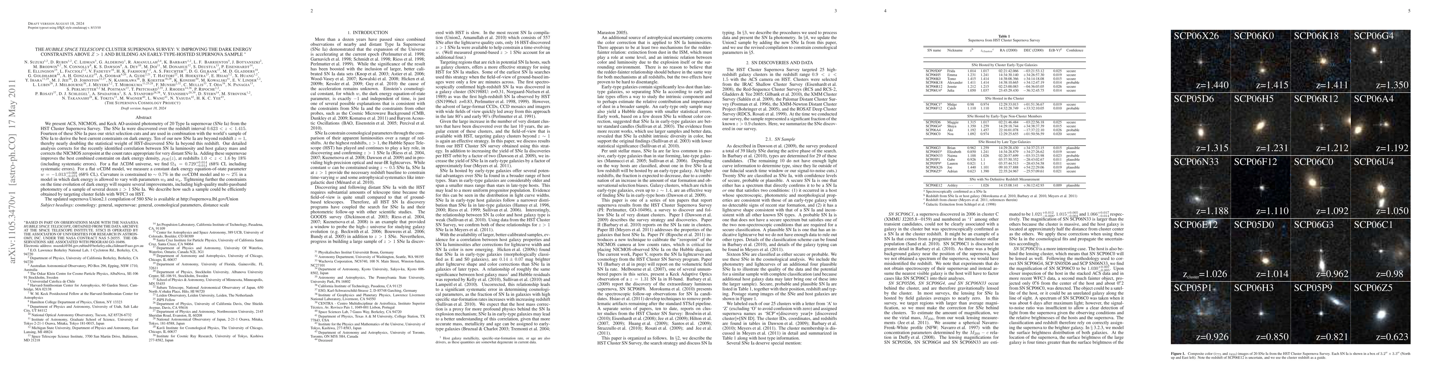 This paper improves dark energy constraints above z=1 using 20 Type Ia supernovae with the Hubble Space Telescope, nearly doubling statistical weight for redshifts beyond z=1 and tightening constraints on dark energy parameters.