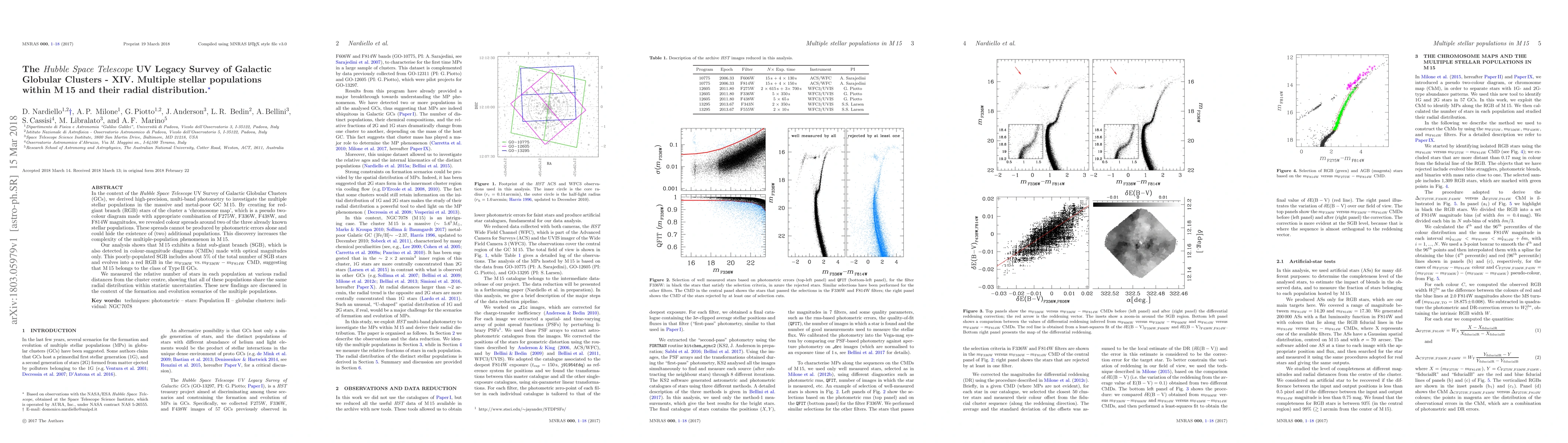 The Hubble Space Telescope UV Legacy Survey reveals multiple stellar populations within the globular cluster M 15, suggesting the presence of two additional populations beyond the three previously known. These populations share a similar radial distribution, complicating the understanding of M 15's formation and evolution.