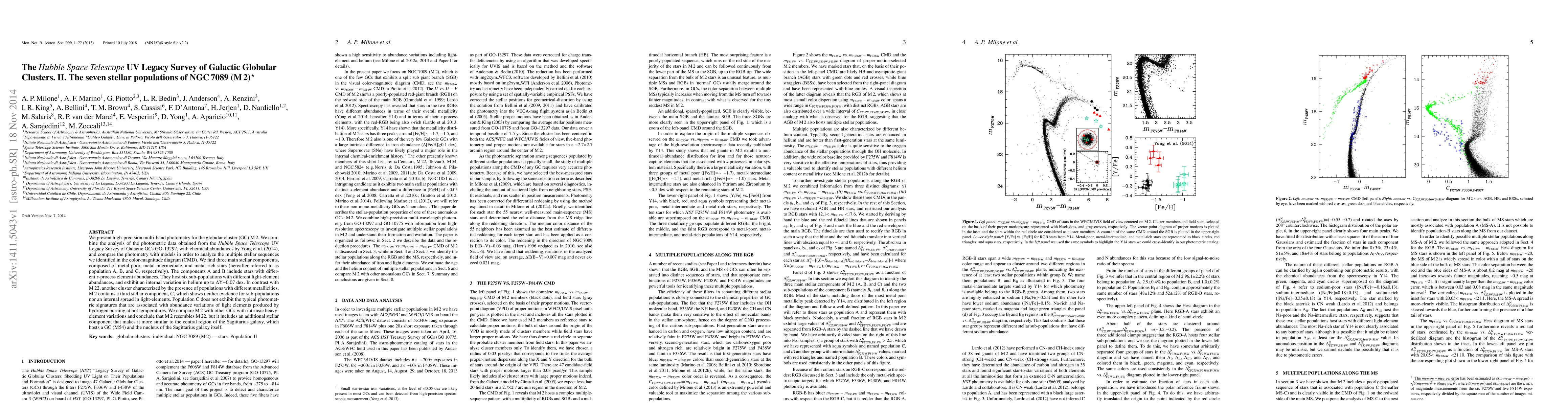 This paper analyzes the stellar populations in the globular cluster M2 using Hubble Space Telescope data, identifying seven distinct stellar populations with varying metallicities and light-element abundances. It finds three main components, with an additional unique component not showing evidence of sub-populations or internal variations in light-elements.