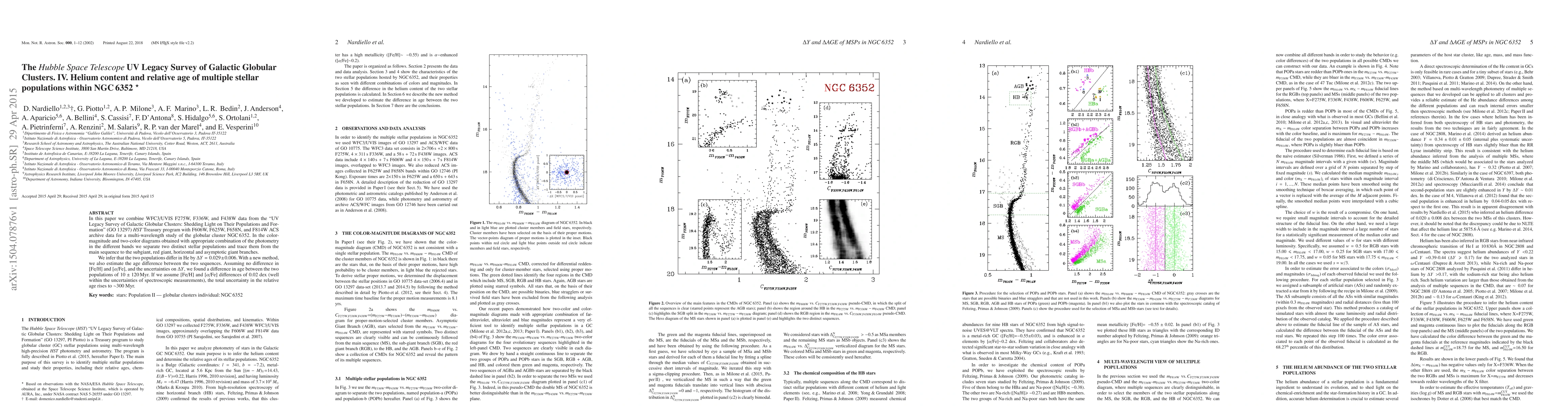 This study uses Hubble Space Telescope data to analyze a globular cluster, NGC 6352, finding two distinct stellar populations with different helium content, which suggests an age difference of up to 300 million years.