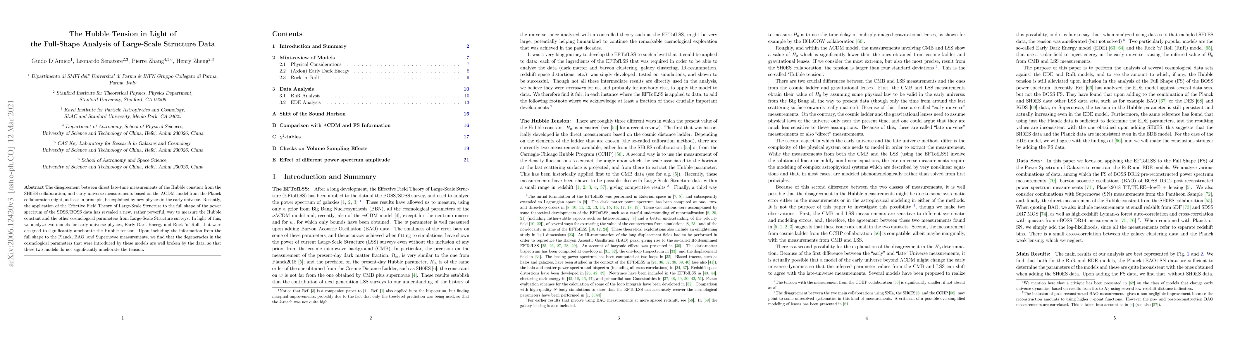 The disagreement between direct late-time measurements of the Hubble constant from the SH0ES collaboration, and early-universe measurements based on the $\Lambda$CDM model from the Planck collaboration might, at least in principle, be explained by new physics in the early universe. Recently, the application of the Effective Field Theory of Large-Scale Structure to the full shape of the power spectrum of the SDSS/BOSS data has revealed a new, rather powerful, way to measure the Hubble constant and the other cosmological parameters from Large-Scale Structure surveys. In light of this, we analyze two models for early universe physics, Early Dark Energy and Rock 'n' Roll, that were designed to significantly ameliorate the Hubble tension. Upon including the information from the full shape to the Planck, BAO, and Supernovae measurements, we find that the degeneracies in the cosmological parameters that were introduced by these models are well broken by the data, so that these two models do not significantly ameliorate the tension.