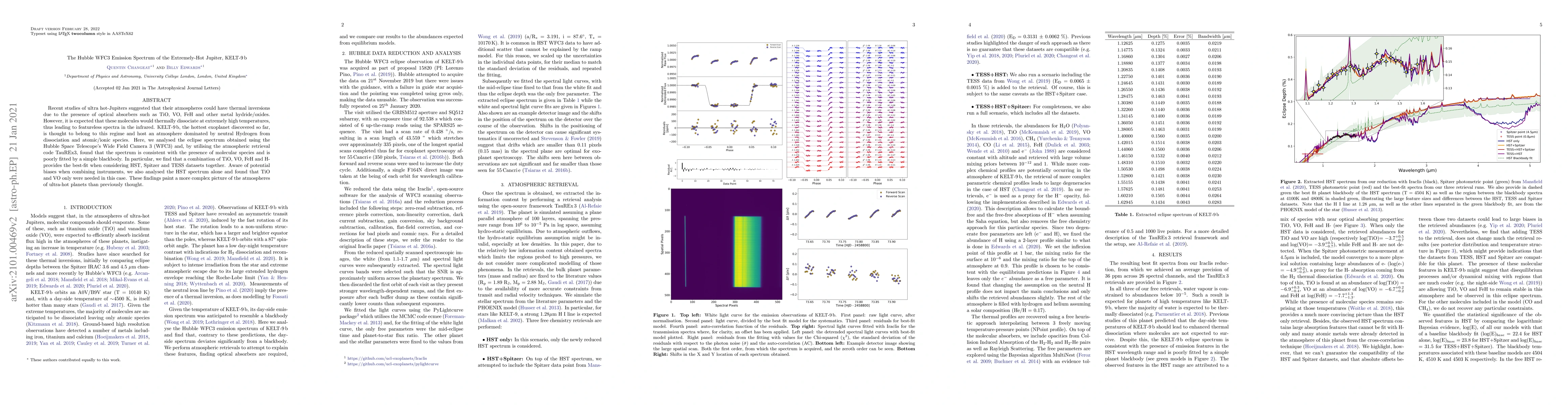 The Hubble WFC3 spectrum of the extremely hot Jupiter KELT-9b reveals the presence of molecular species like TiO, VO, FeH, and H- in its atmosphere, challenging the expectation of featureless spectra due to thermal dissociation at such high temperatures. The findings suggest a more complex atmospheric composition than previously anticipated.