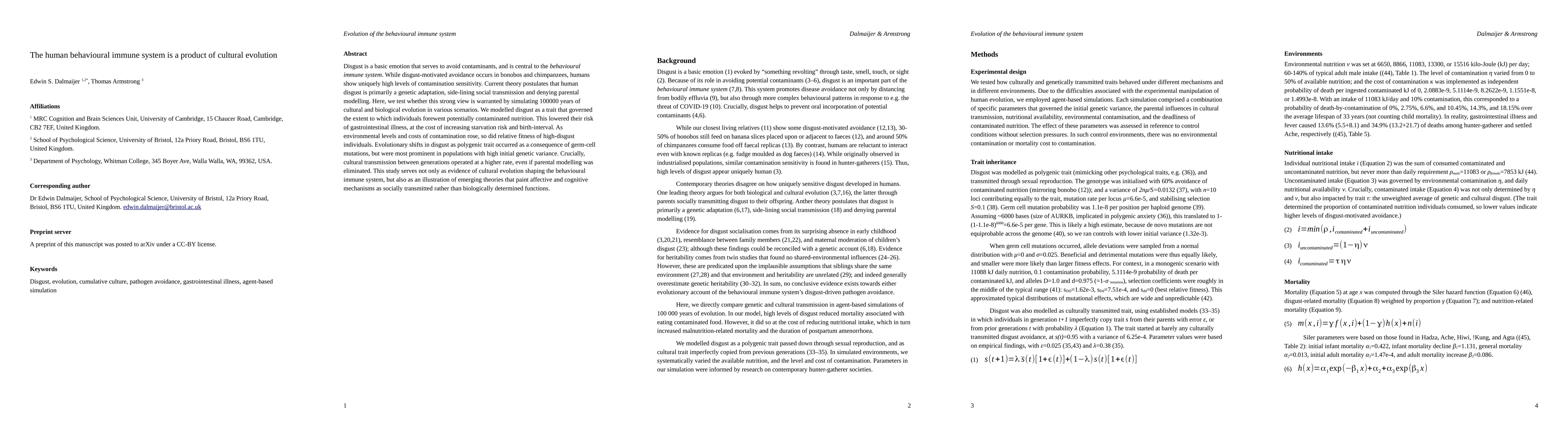 Disgust is a basic emotion that serves to avoid contaminants, and is central to the behavioural immune system. While disgust-motivated avoidance occurs in bonobos and chimpanzees, humans show uniquely high levels of contamination sensitivity. Current theory postulates that human disgust is primarily a genetic adaptation, side-lining social transmission and denying parental modelling. Here, we test whether this strong view is warranted by simulating 100000 years of cultural and biological evolution in various scenarios. We modelled disgust as a trait that governed the extent to which individuals forewent potentially contaminated nutrition. This lowered their risk of gastrointestinal illness, at the cost of increasing starvation risk and birth-interval. As environmental levels and costs of contamination rose, so did relative fitness of high-disgust individuals. Evolutionary shifts in disgust as polygenic trait occurred as a consequence of germ-cell mutations, but were most prominent in populations with high initial genetic variance. Crucially, cultural transmission between generations operated at a higher rate, even if parental modelling was eliminated. This study serves not only as evidence of cultural evolution shaping the behavioural immune system, but also as an illustration of emerging theories that paint affective and cognitive mechanisms as socially transmitted rather than biologically determined functions.