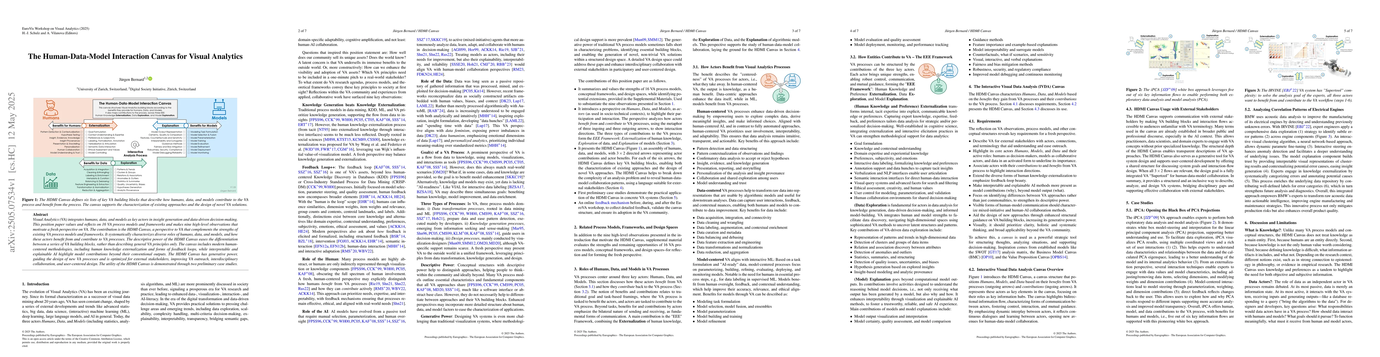Unlike existing VA process models, the HDMI Canvas provides a fine-grained perspective on human, data, and model interactions, emphasizing human-centered and explainable AI aspects.