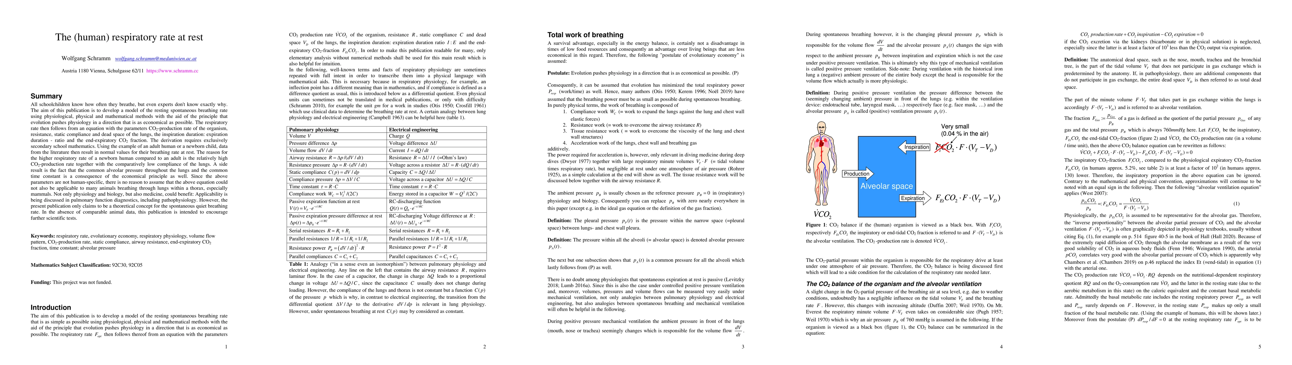 This paper develops a theoretical model to predict the resting respiratory rate based on physiological and mathematical principles, showing that newborns have higher rates due to higher CO2-production and lower lung compliance. The model suggests applicability across various animals and potential benefits for pulmonary diagnostics.