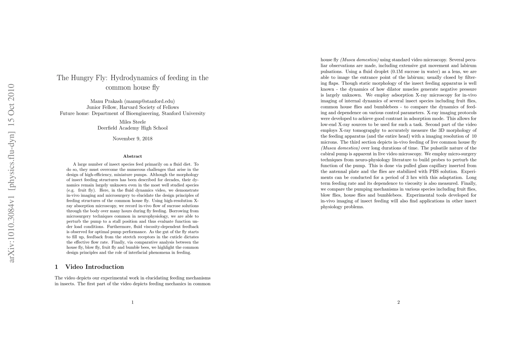 Researchers studied the feeding mechanism of the common house fly using high-resolution imaging and microsurgery, revealing that it uses fluid viscosity-dependent feedback to optimize pump performance and fill its gut as needed.