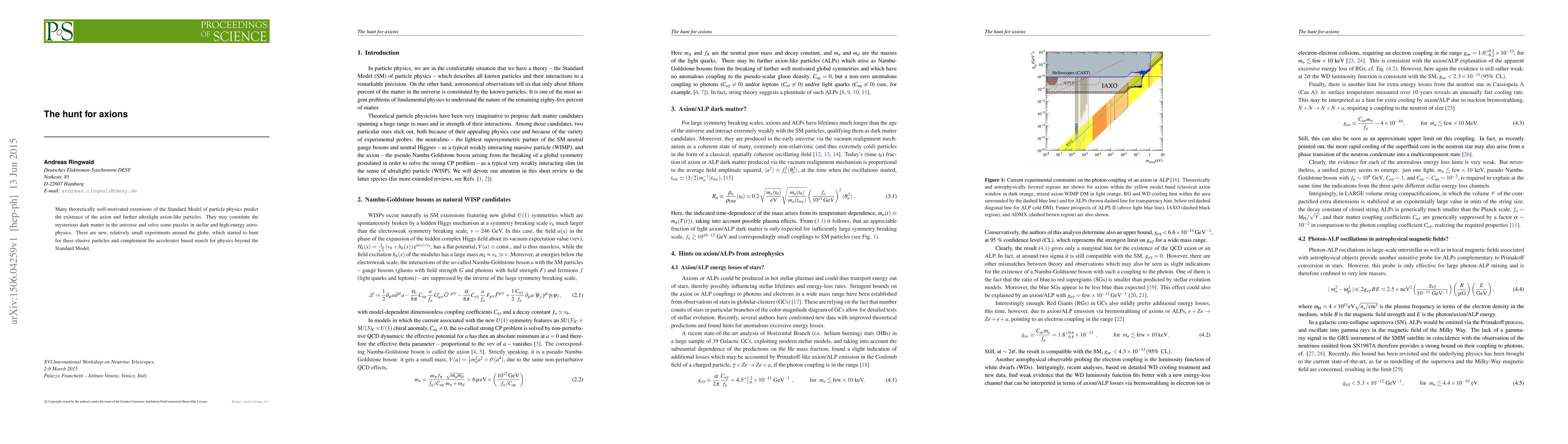 Many theoretically well-motivated extensions of the Standard Model of particle physics predict the existence of the axion and further ultralight axion-like particles. They may constitute the mysterious dark matter in the universe and solve some puzzles in stellar and high-energy astrophysics. There are new, relatively small experiments around the globe, which started to hunt for these elusive particles and complement the accelerator based search for physics beyond the Standard Model.