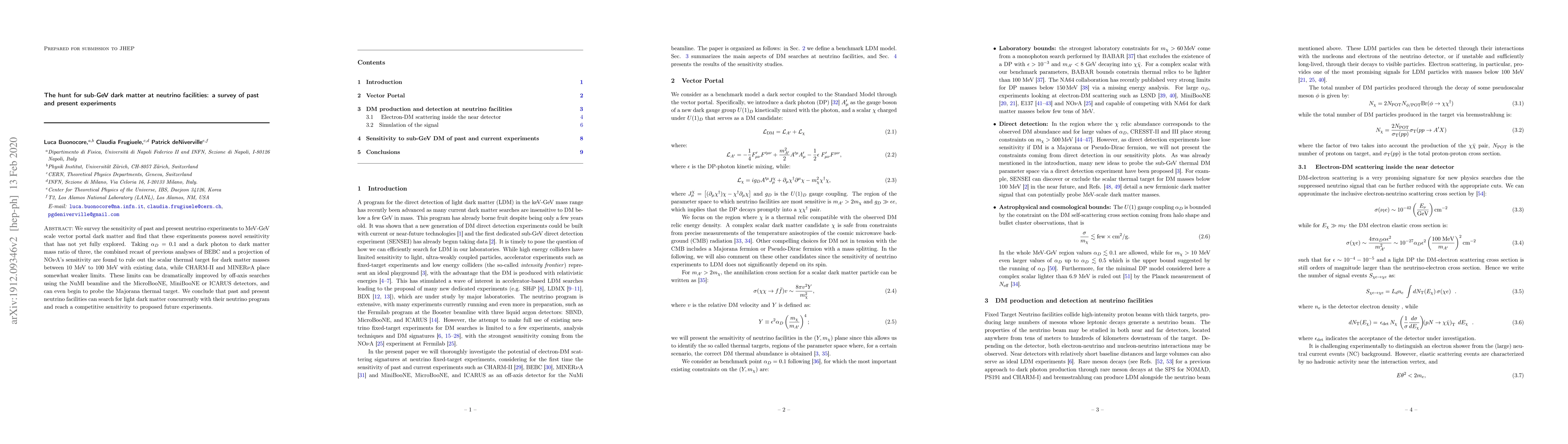 We survey the sensitivity of past and present neutrino experiments to MeV-GeV scale dark matter, and find that these experiments possess novel sensitivity that has not yet fully explored. NO$\nu$A and BEBC are found to rule out the scalar thermal target for dark matter masses between 10 MeV to 100 MeV with existing data, while CHARM-II and MINER$\nu$A place somewhat weaker limits. These limits can be dramatically improved by off-axis searches using the NuMI beamline and the MicroBooNE, MiniBooNE or ICARUS detectors, and can even begin to probe the Majorana thermal target. We conclude that past and present neutrino facilities can search for light dark matter concurrently with their neutrino program and reach a competitive sensitivity to proposed future experiments.