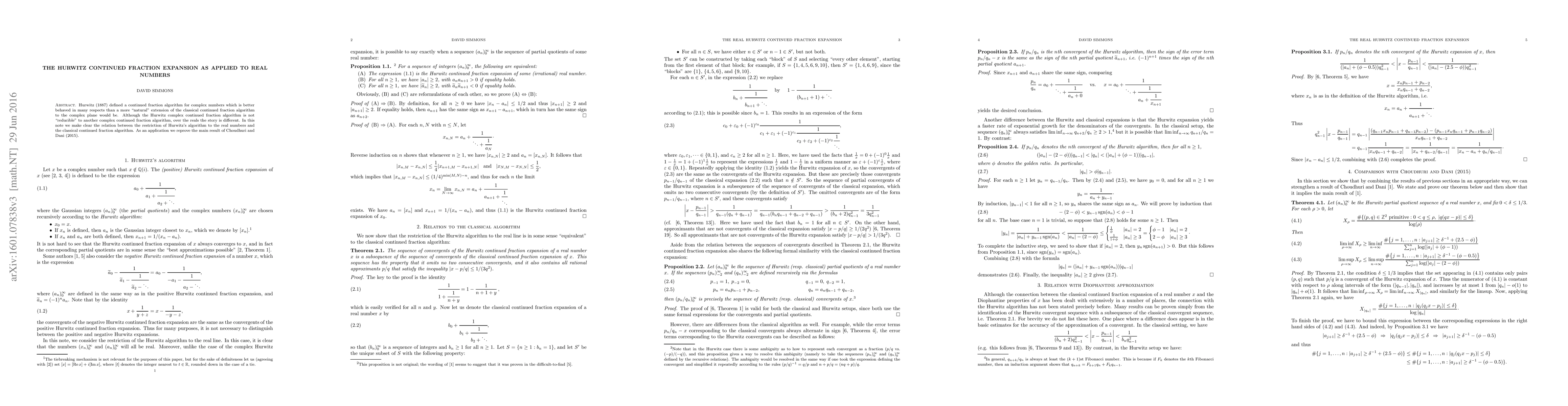 This research clarifies the relationship between Hurwitz's algorithm for real numbers and the classical continued fraction algorithm, providing insights into Diophantine approximation and continued fraction properties, which can be useful in number theory and related fields.