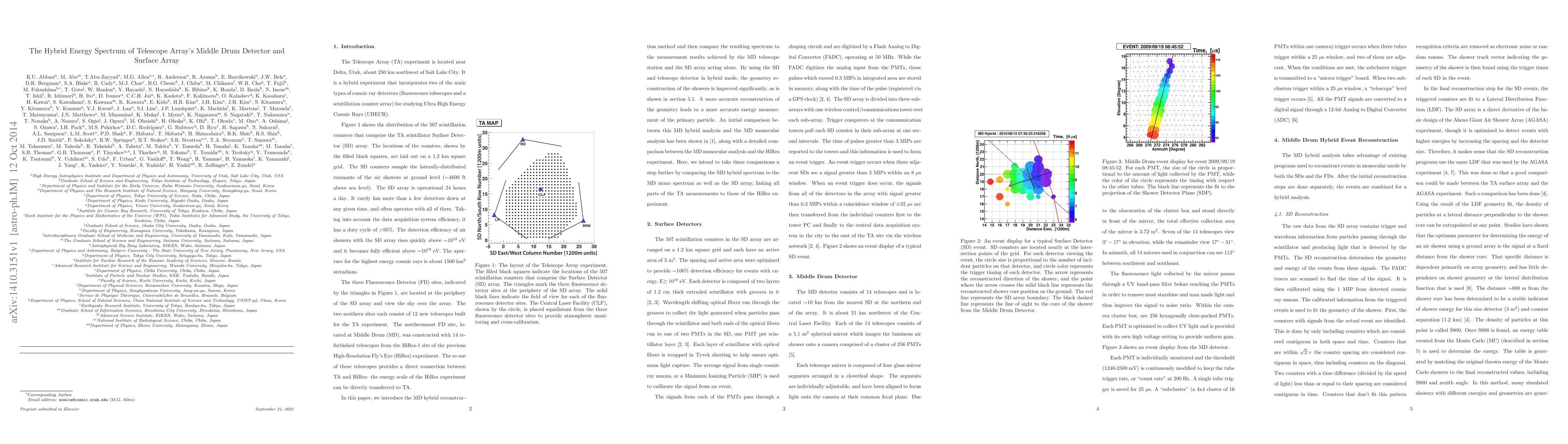 The Telescope Array experiment employs a hybrid detector to study ultra high energy cosmic rays, combining fluorescence telescopes and scintillator detectors to enhance shower reconstruction. The Middle Drum hybrid spectrum, integrating both data types, provides a more accurate energy measurement compared to monocular mode and links the Middle Drum data with the surface array.