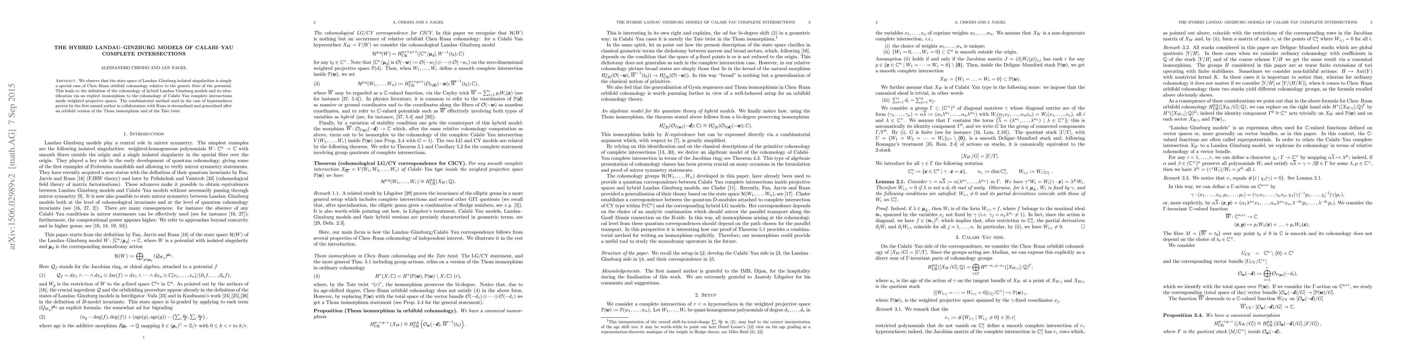 This paper defines the cohomology of hybrid Landau-Ginzburg models, showing it is isomorphic to the cohomology of Calabi-Yau complete intersections in weighted projective spaces. It generalizes previous combinatorial methods for hypersurfaces using an orbifold version of the Thom isomorphism and the Tate twist.