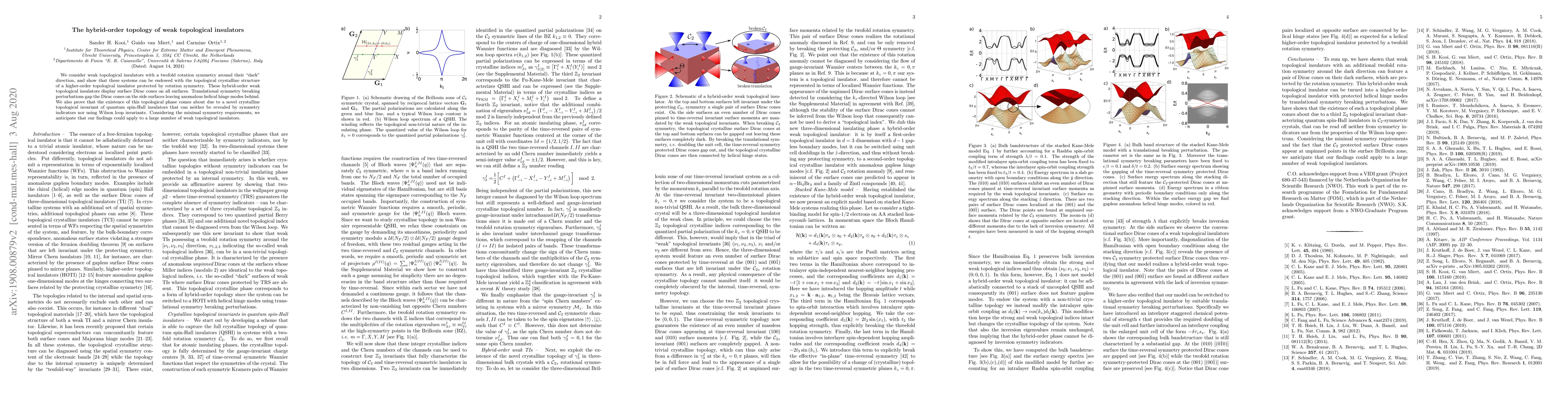 We consider weak topological insulators with a twofold rotation symmetry around the dark direction, and show that these systems can be endowed with the topological crystalline structure of a higher-order topological insulator protected by rotation symmetry. These hybrid-order weak topological insulators display surface Dirac cones on all surfaces. Translational symmetry breaking perturbations gap the Dirac cones on the side surfaces leaving anomalous helical hinge modes behind. We also prove that the existence of this topological phase comes about due to a hidden crystalline topological invariant of quantum spin-Hall insulators that can neither be revealed by symmetry indicators nor using Wilson loop invariants. Considering the minimal symmetry requirements, we anticipate that our findings could apply to a large number of weak topological insulators.