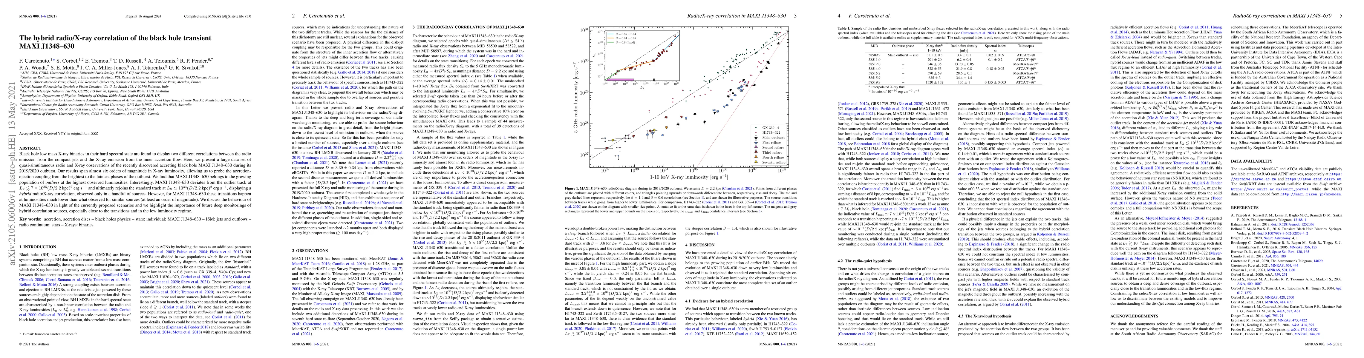 This study investigates the hybrid radio/X-ray correlation in the black hole transient MAXI J1348-630, revealing its deviation from the standard correlation track at high luminosities and rejoining it at lower luminosities. This unique behaviour suggests the need for further monitoring to understand the accretion-ejection coupling in such sources.