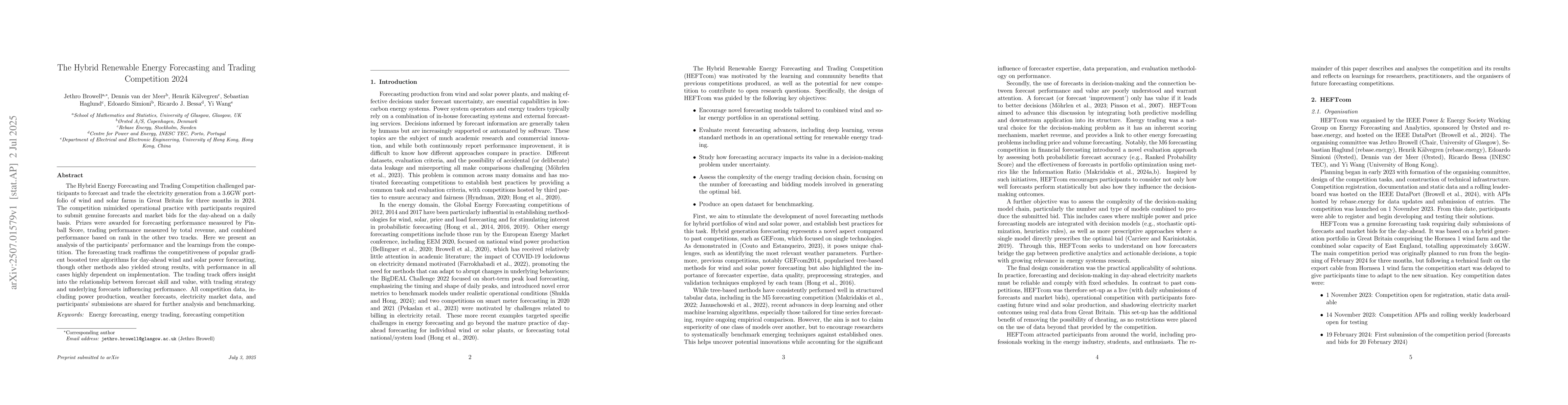 The research utilized a hybrid renewable energy forecasting and trading competition, where participants forecasted and traded electricity generation from a 3.6GW portfolio of wind and solar farms in Great Britain over three months in 2024. Participants submitted genuine forecasts and market bids daily for the day-ahead market, with prizes awarded based on Pinball Score for forecasting, total revenue for trading, and combined performance.