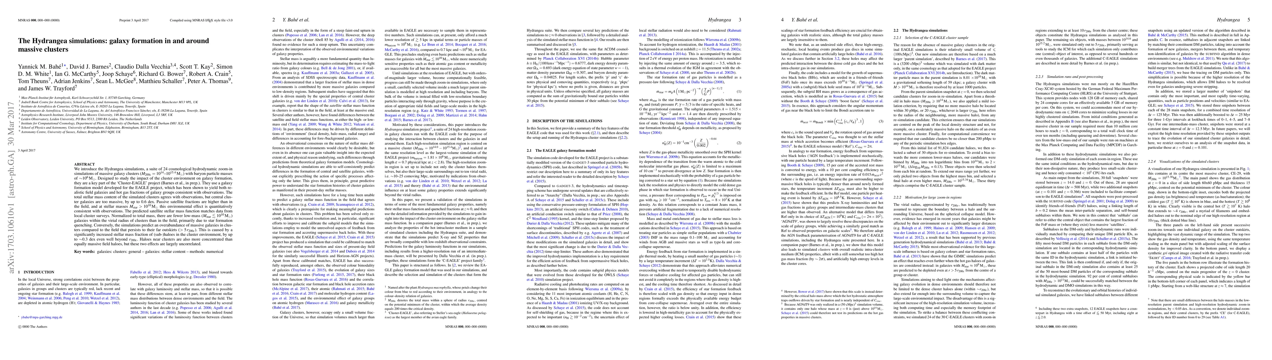 The Hydrangea simulations explore galaxy formation in massive clusters, revealing that central cluster galaxies are overmassive and satellite galaxies exhibit higher passive fractions compared to the field. The simulations show an overabundance of massive galaxies in clusters due to increased stellar mass fractions in (sub-)haloes, extending beyond the cluster's virial radius.